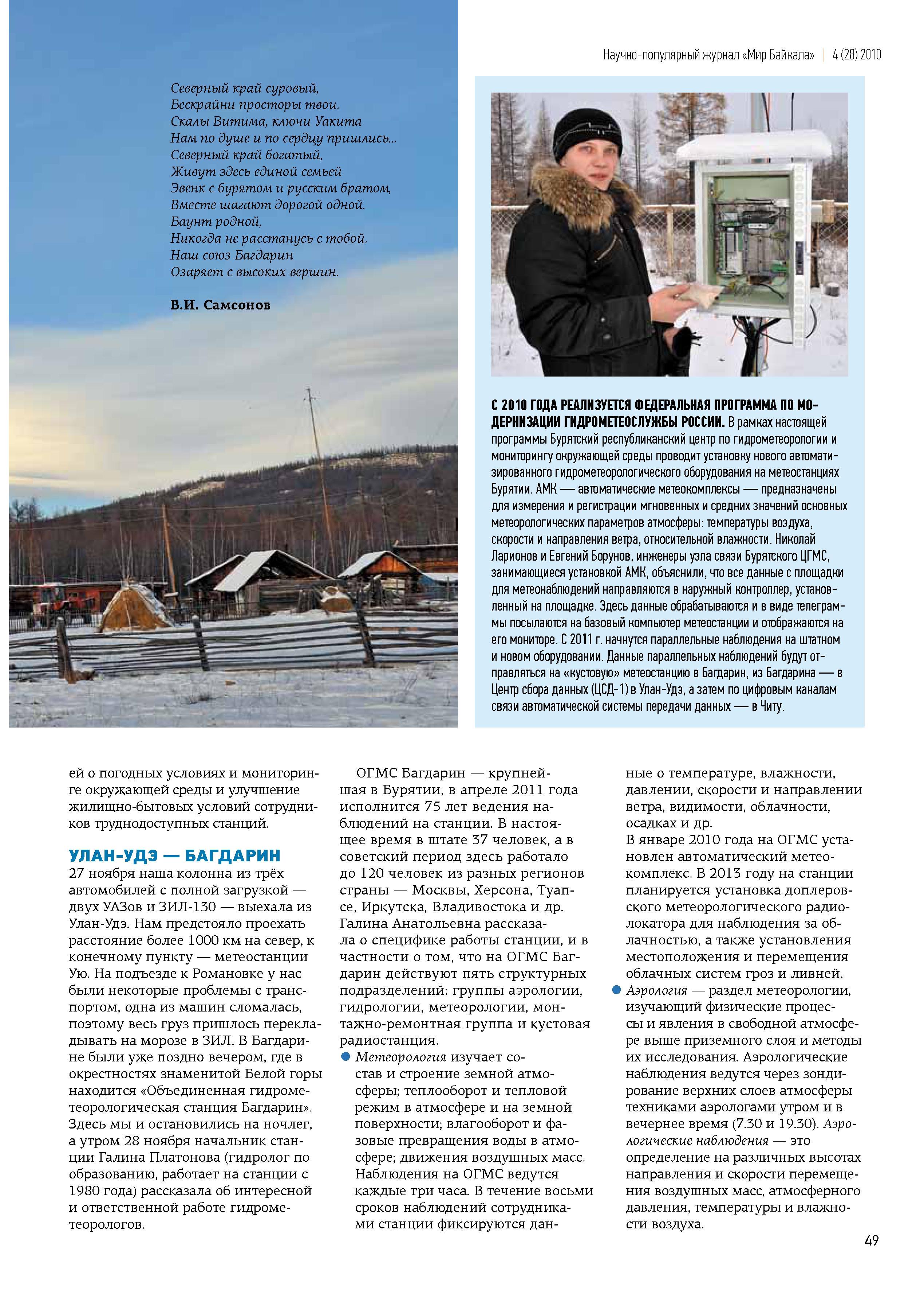 Публикация в журнале "Мир Байкала" №4(28) 2010 г. (начало).