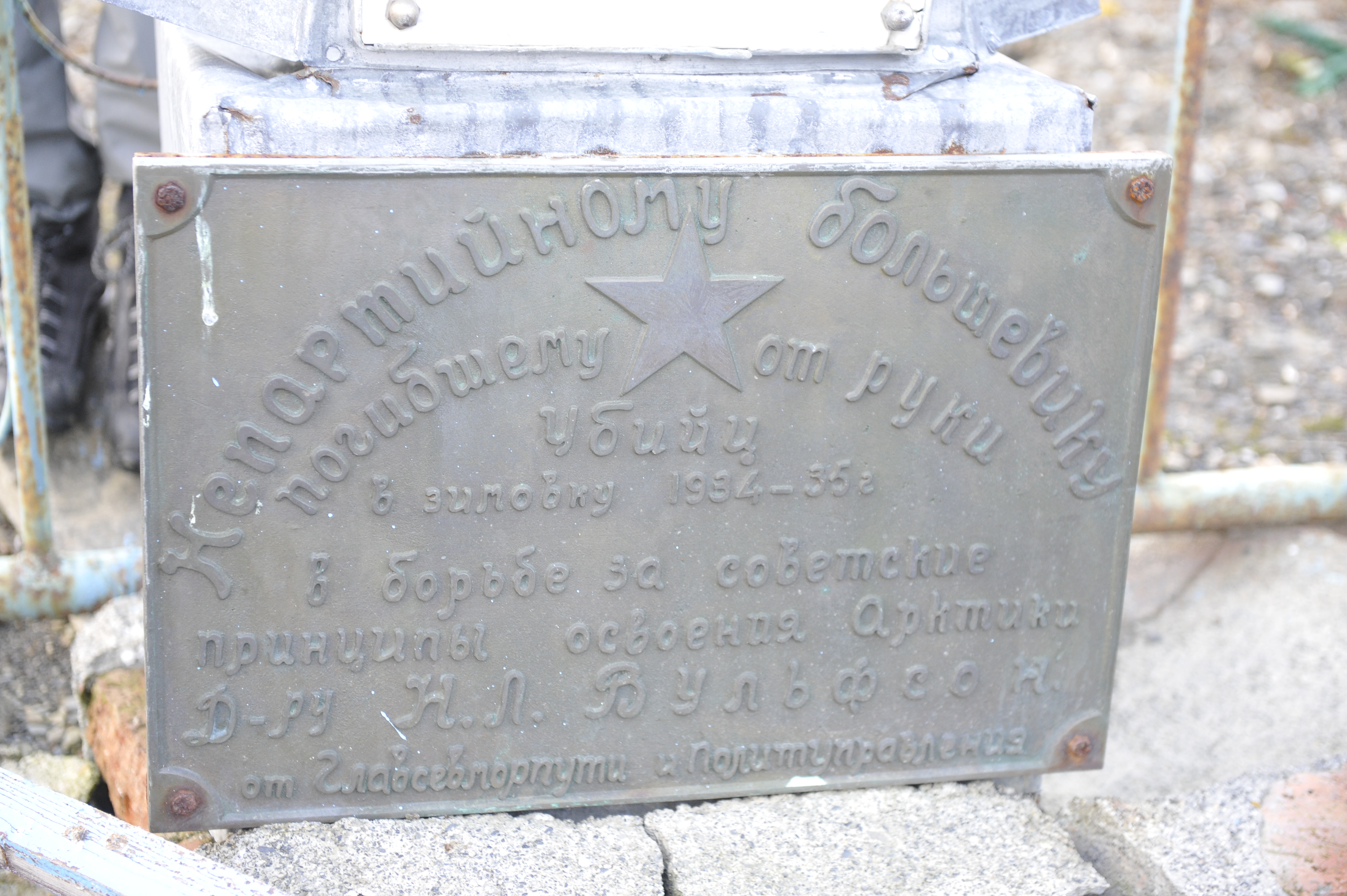 На острове есть еще один памятник — могила доктора Н. Л. Вульфсона, который был похоронен на южном берегу острова в январе 1935 г. На мемориальной доске, установленной на его могиле, значится: «Непартийному большевику, погибшему от руки убийц в зимовку 1934/35 г. в борьбе за советские принципы освоения Арктики, доктору Н. Л. Вульфсону от Главсевморпути и Политуправления» (Минеев, 1946).