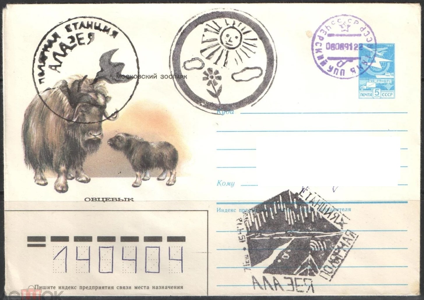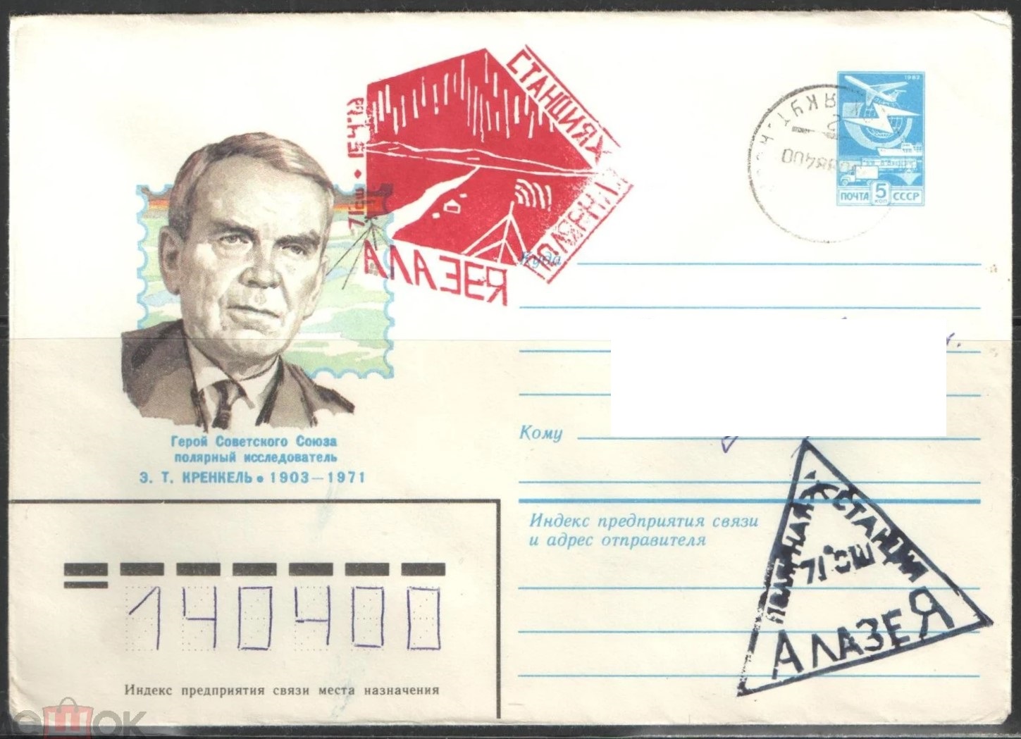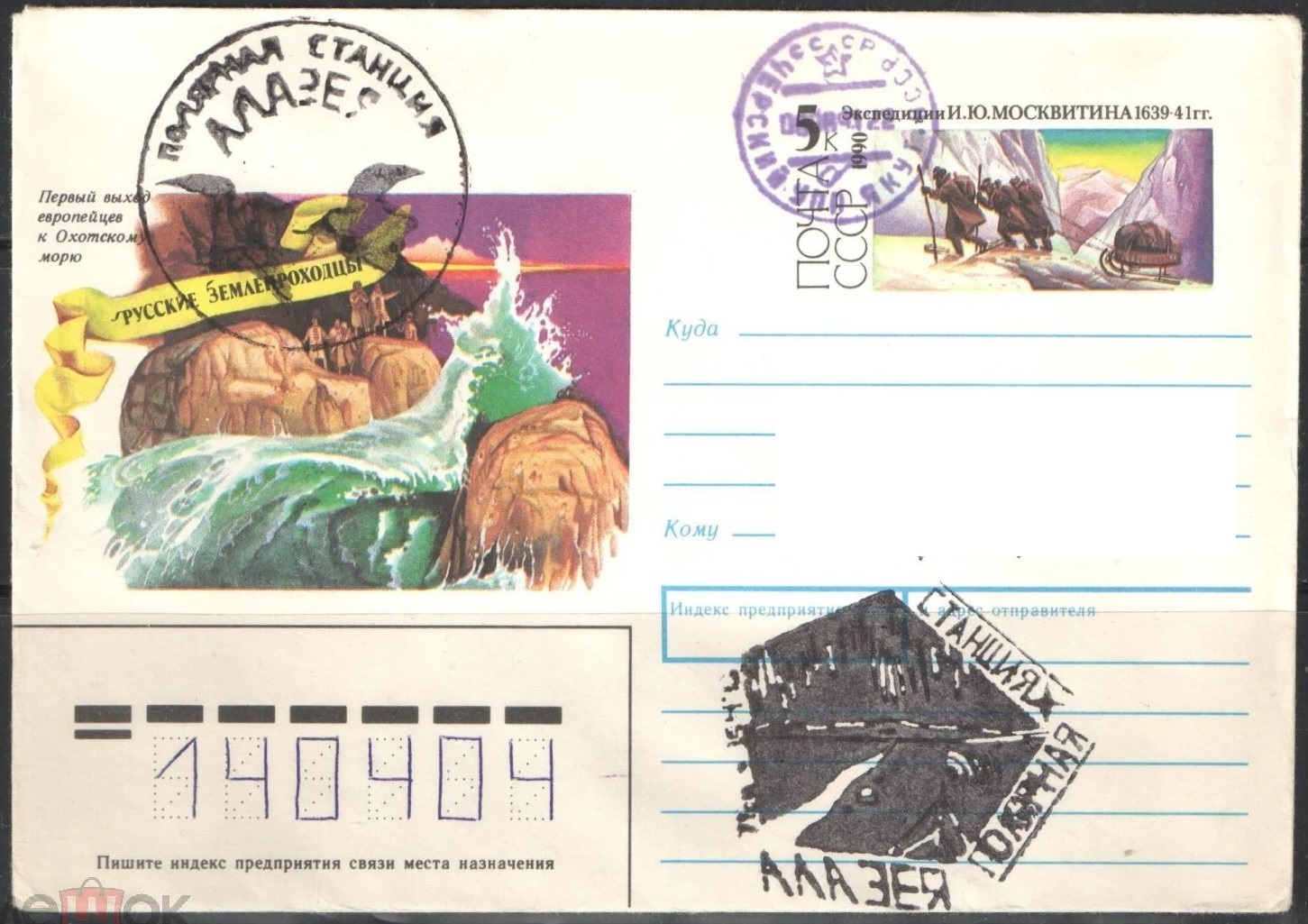 Конверт со служебной отметкой станции.