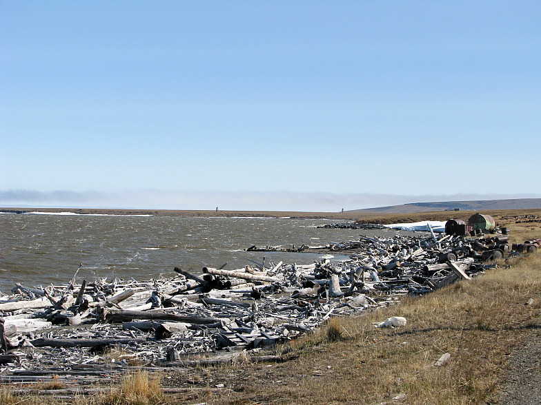 На советских картах Амбарчик обозначен как поселок. Сегодня это полярная метеостанция. Работают здесь всего четыре человека. Мы заглянули буквально на 15 минут, но пока болтали, разыгрался настоящий шторм. Стало ясно, что сегодня уже никуда не выходим, поэтому баня, ужин и долгий сон… С 1932 по 1954 год в бухте Амбарчик был один из лагерей системы ГУЛАГ. Заключенные работали на перегрузке угля с морских судов на речные, которые затем везли его вверх по Колыме для нужд все тех же лагерей. С тех пор осталось много деревянных полуразрушенных построек. Еще на всем побережье валяются сотни бочек. Среди них встретились даже немецкие 1943 года. То ли они из-под трофейного топлива, то ли это следы экспедиций, которые Гитлер и Геббельс якобы посылали в акваторию Северного Ледовитого океана на поиски «арийской Атлантиды».