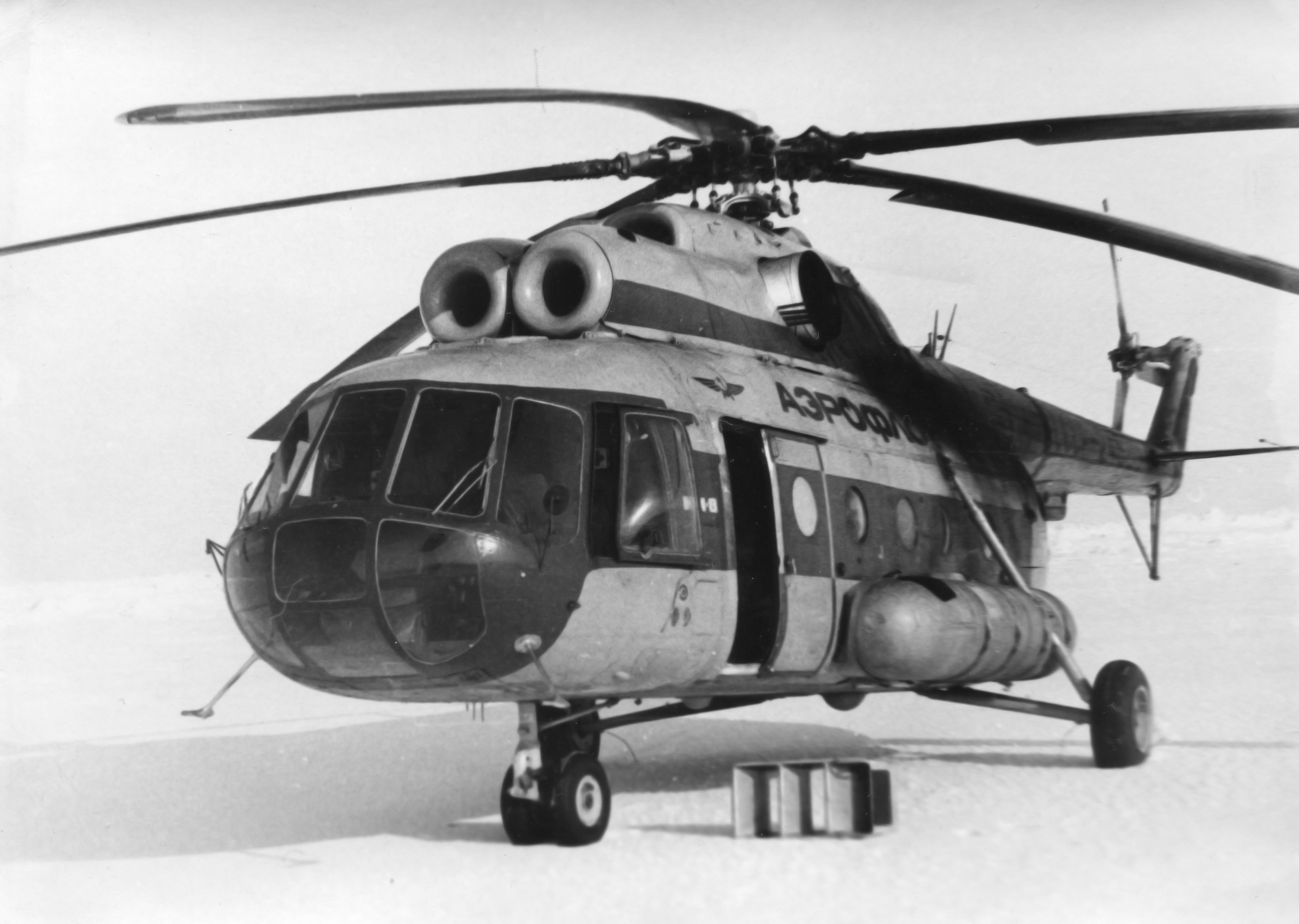 Ми-8 ЧОАЭ КИОАО. На закопчёной хвостовой балке трудно прочитать номер, только при сильном увеличении можно разобрать после СССР первую двойку, после вроде четвёрка, а дальше только снизу три полукруга, что вполне соответствует 680. (Из личного архива)