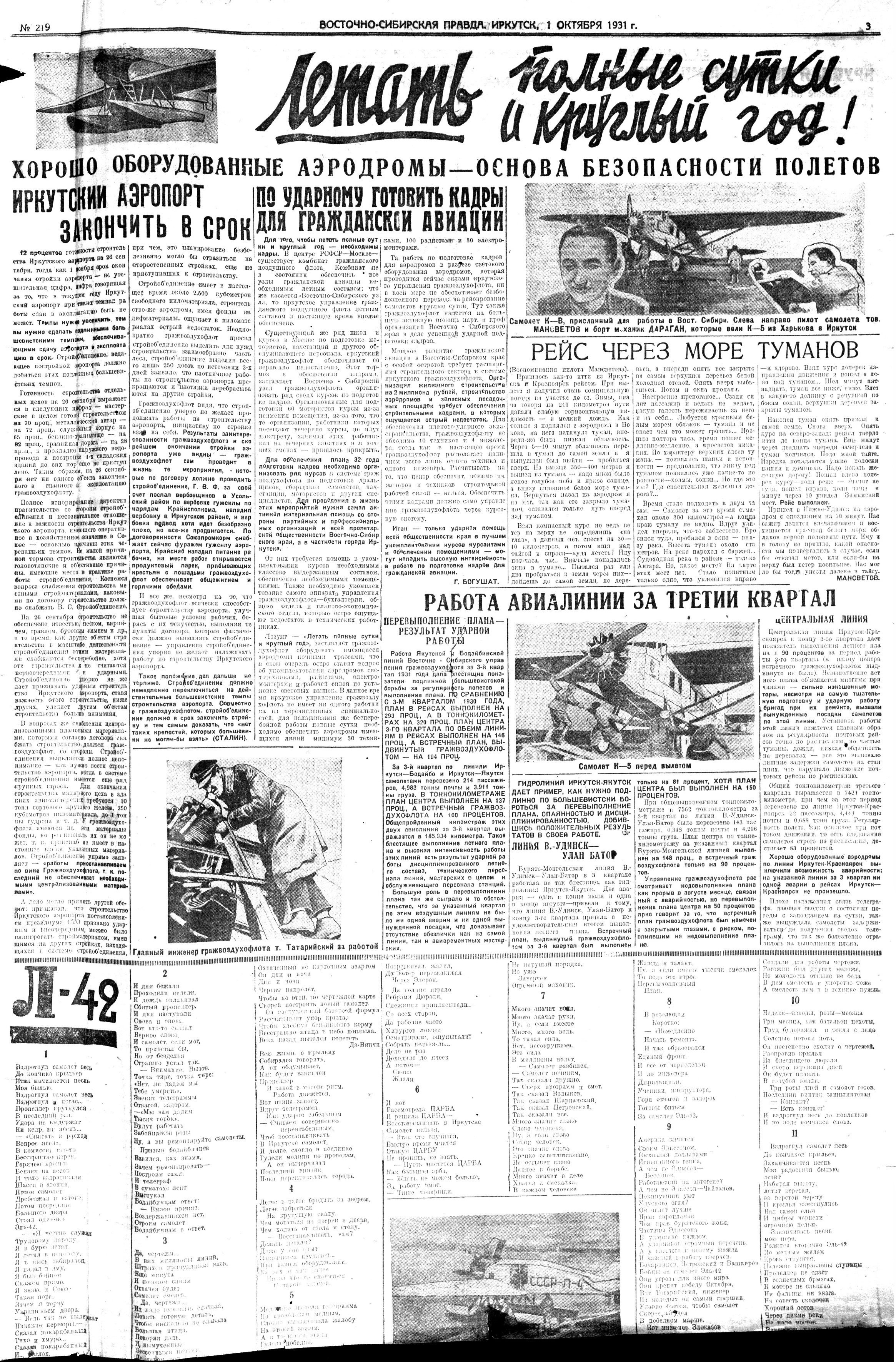 1 августа ударники мастерских В. С. Управления Гражвоздухофлота отпраздновали новую победу. В этот день передан самолет, построенный в г. Иркутске на средства бодайбинских рабочих.