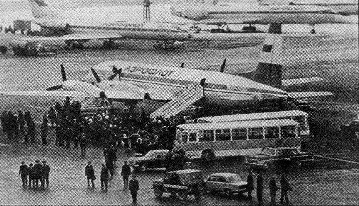 Прилёт Ил-18Д «СССР-74267» из Антарктиды во Внуково. Москва, 23 февраля 1980 г. Фото из архива Заслуженного пилота РФ Е.П.Бунчина.
