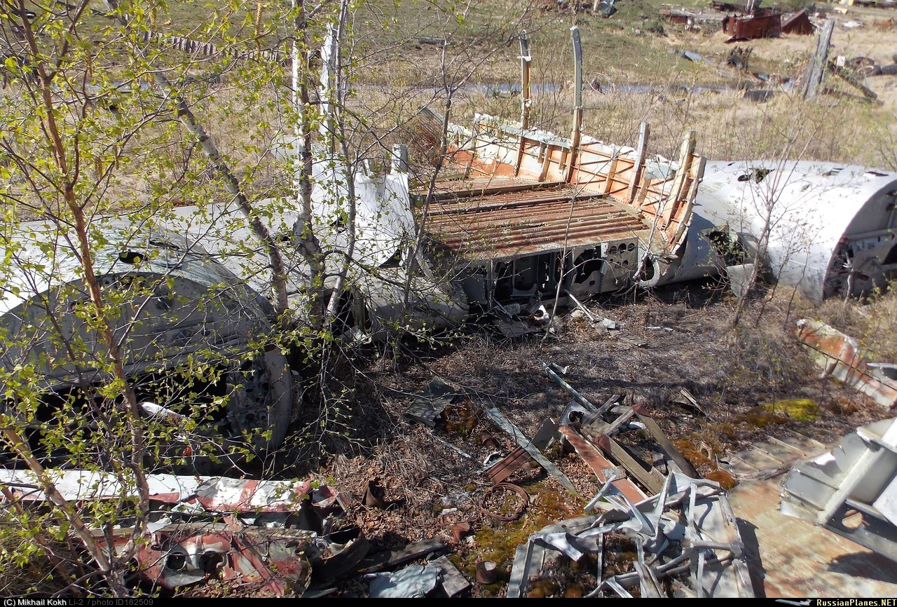 На том же сайте ещё одни остатки неизвестного Ли-2 на свалке уничтоженных вертолётов, самолётов и аэродромной техники (бывшее вертолётное поле) в Нюрбе. 17 мая 2015 г. Фото Анастасии Юшкевич - https://russianplanes.net/id182569