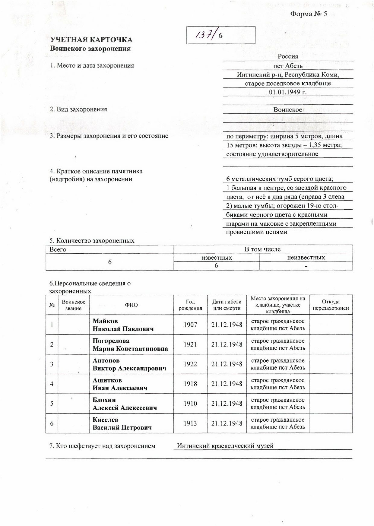 Участие в поисках «Ли-2» принимали все кто мог: железнодорожники, геологи, строители, лётчики и оленеводы. Отправился и отряд солдат-лыжников. Он то и обнаружил тела погибших. На нартах их доставили в поселок Абезь, где похоронили в братской могиле. А вместе с ними, заочно и, считавшихся пропавшими Прокофьева с Солдатовым. «Увидеть летчиков живыми никто не ожидал» - как напишут позже в одной из газетных заметок.