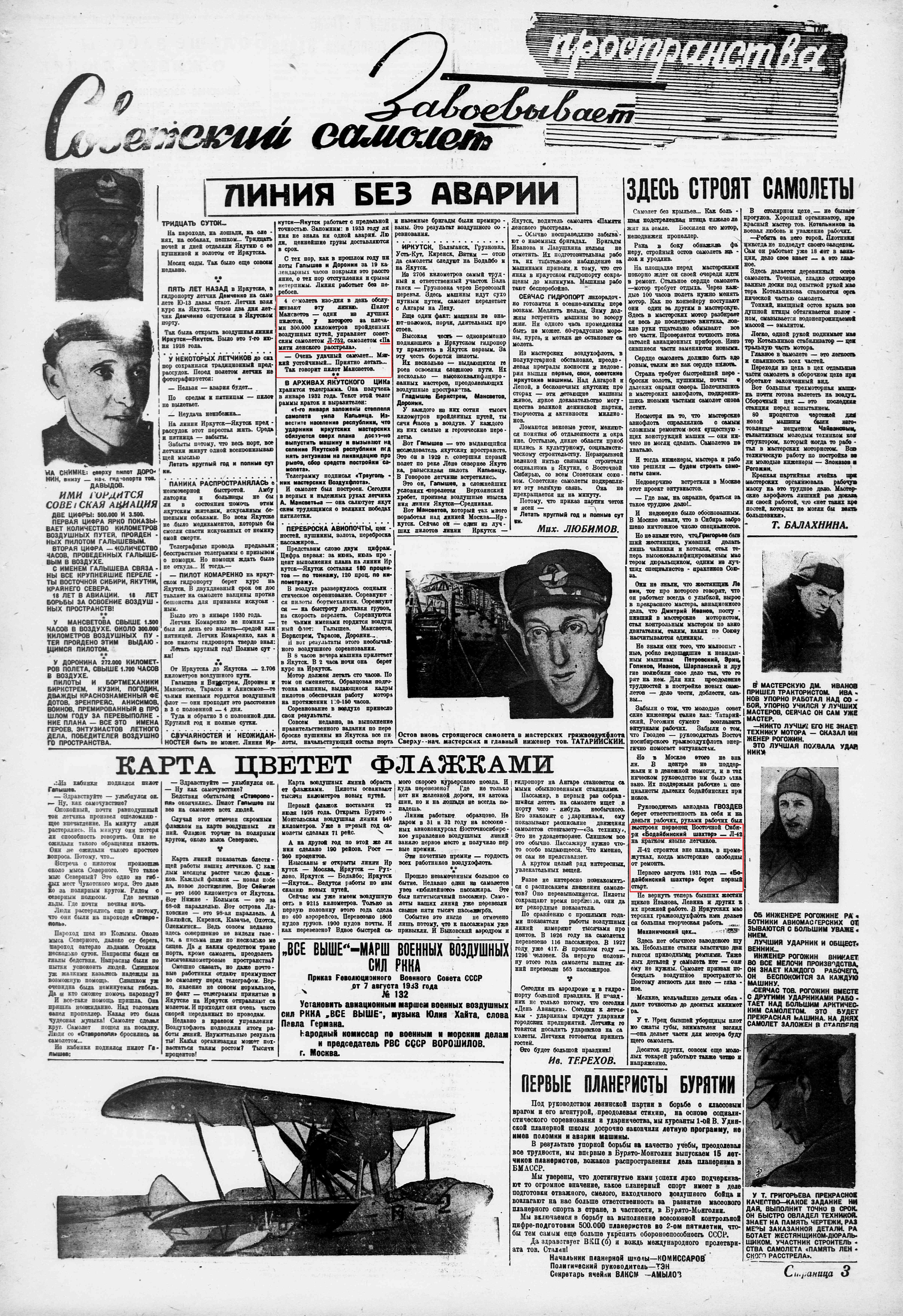борт "Л-42" - самолёт "Бодайбинский Шахтёр" (введён в эксплуатацию 1 августа 1931);