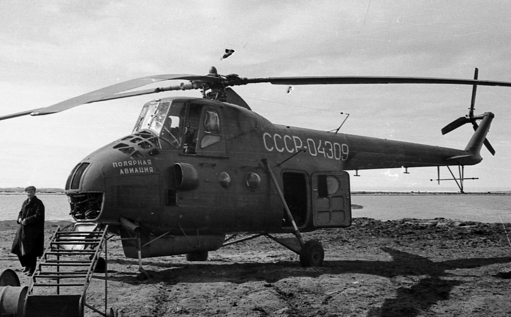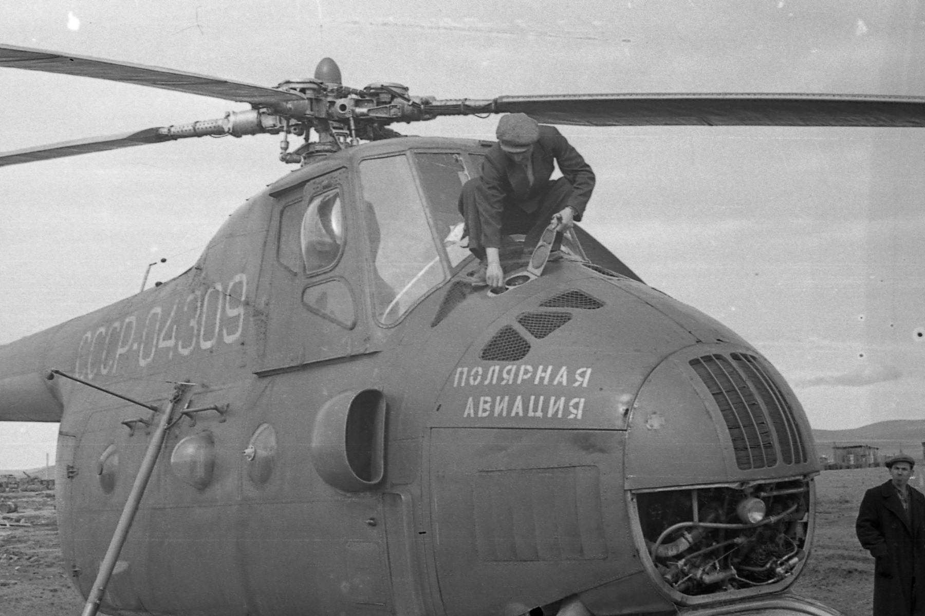 Таймыр, Усть-Тарея. Вертолет УПА (Управления Полярной Авиации) в помощь геологам. Июнь 1957 г.