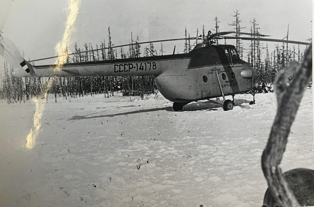 Вертолёт Чокурдахской отдельной авиаэскадрильи КИОАО. Фото из альбома "Лена - голубой меридиан Якутии", фотограф Владимир Чин-Мо-Цай.