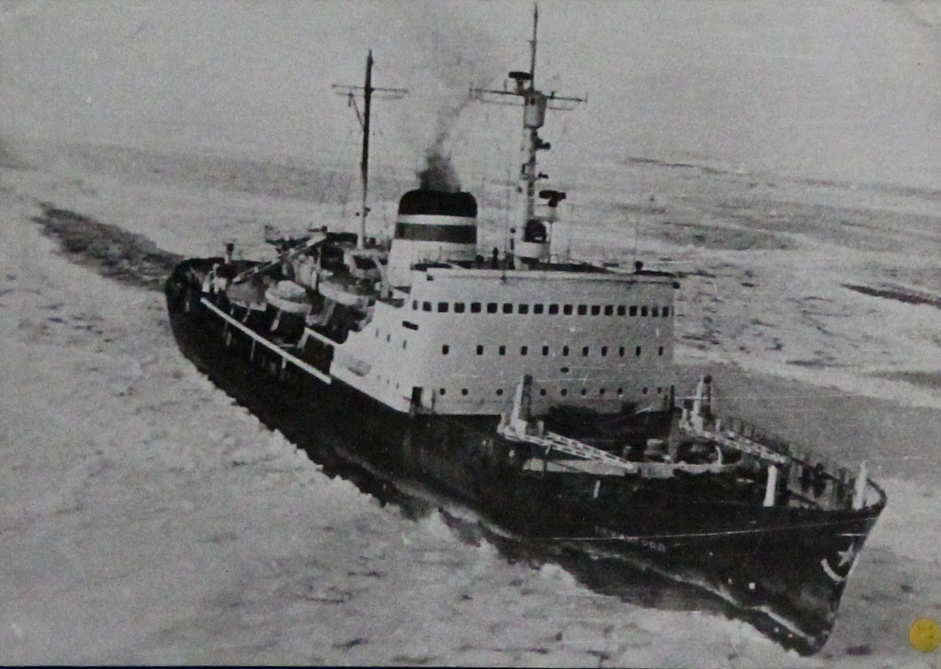 Принимал участие в ледовой проводке ледоколом "Ленинград" (капитан -Ю.П.Филичев, капитан-наставник - В.М.Дудин) ДВМП д/э Пенжина" и сухогруза-лесовоза "Красногорсклес" в заливе Байкал Сахалинского залива Охотского моря 11 мая 1966 г. Базировался на борту ледокола. Фотограф Ю.Н.Солодовников.//Из Госкаталога - там целая серия; плюс - https://ok.ru/group/59598998339612/album/945369323804