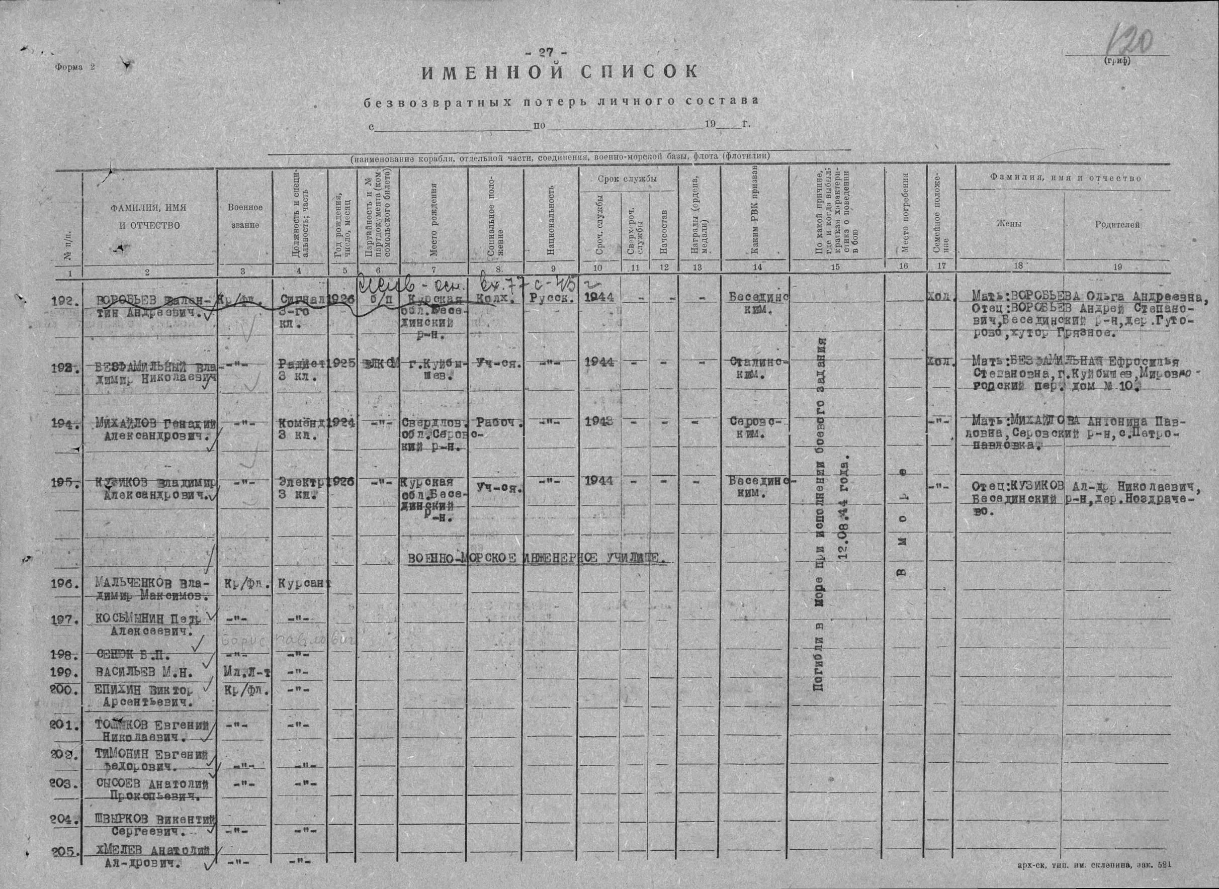 Донесение о безвозвратных потерях исх 02196 от 21.10.1944 (ЦВМА, Ф. 4038, О. 54, Д. 23).
