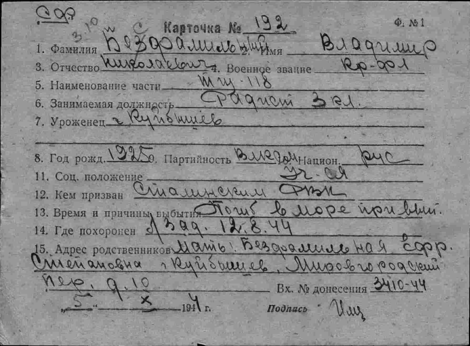 Карточка (ЦВМА, Картотека безвозвратных потерь).