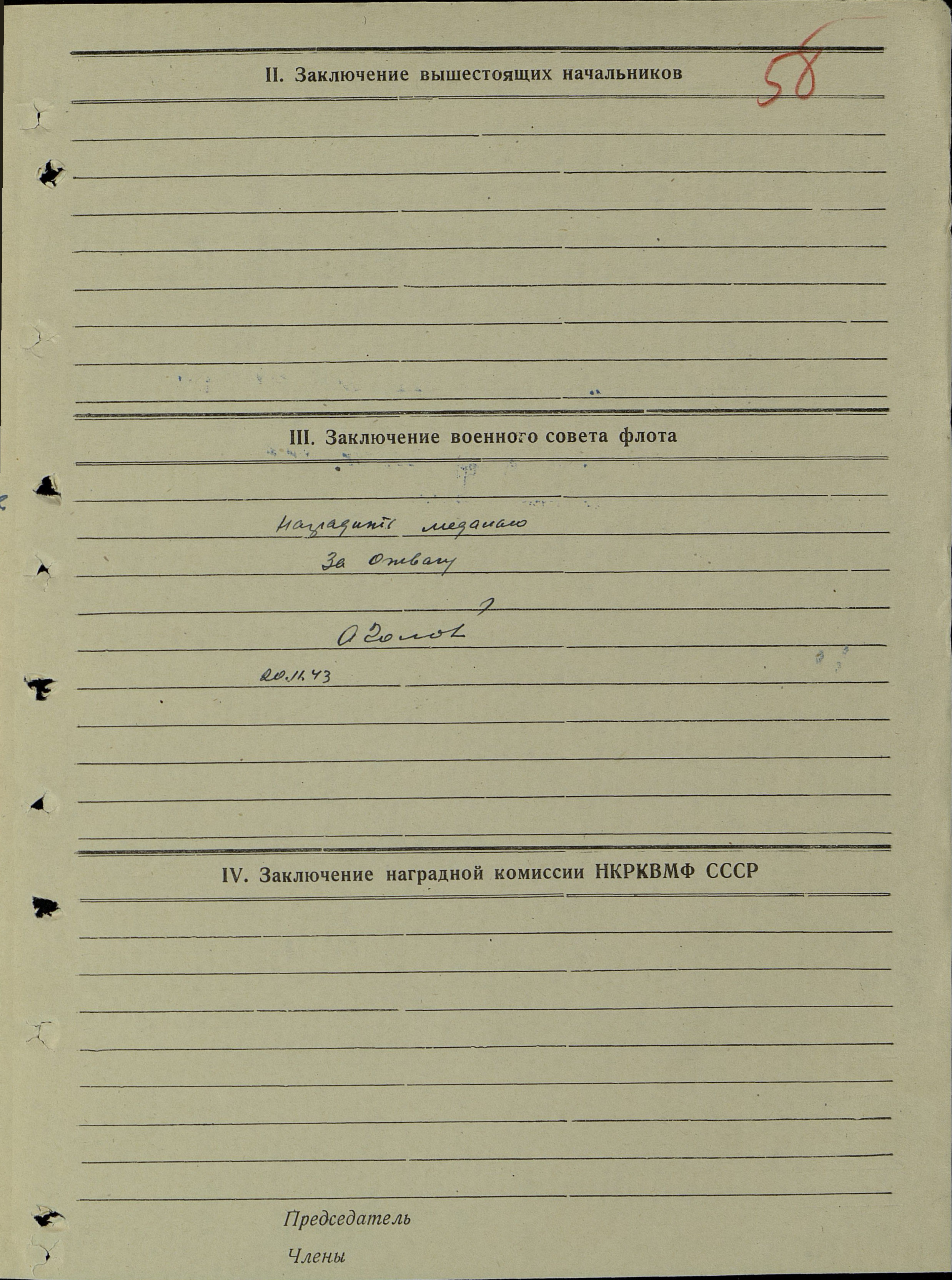 Наградной лист.