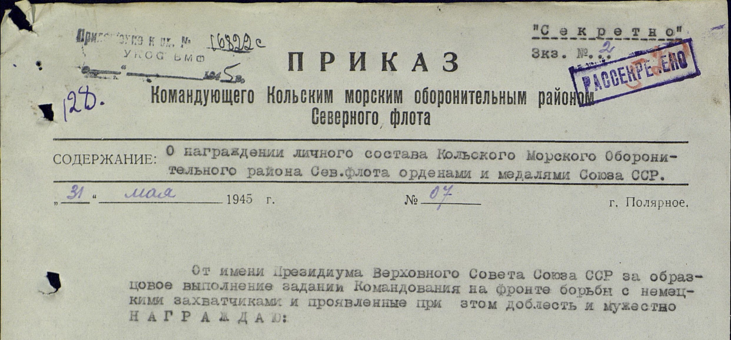 Наградные документы.
