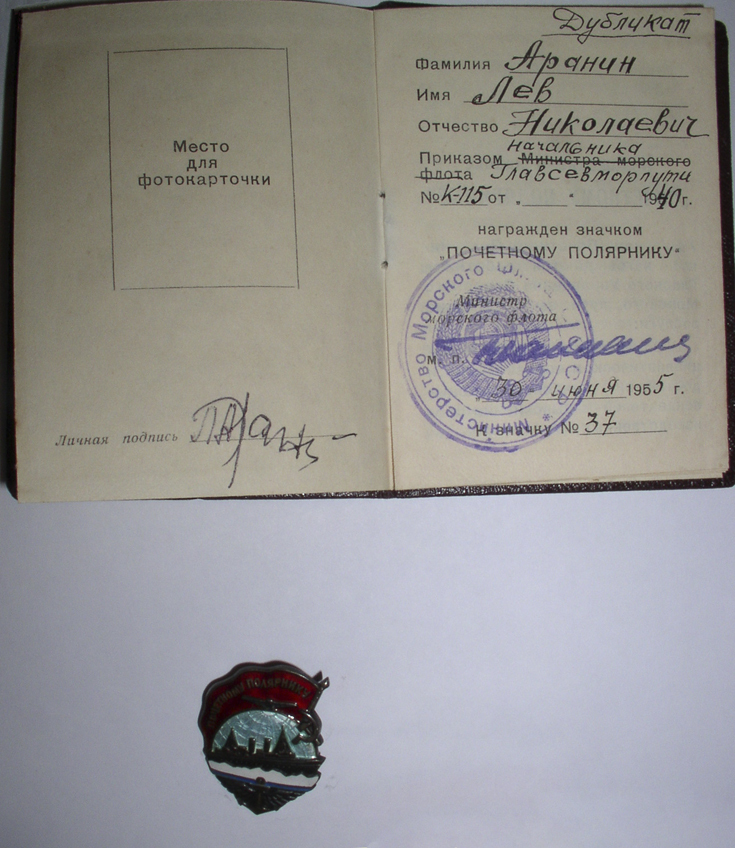 Со слов папы, «он откликнулся» на призыв того времени покорять Арктику, и подался «в полярники». 1936-37 гг. – учится на курсах повышения квалификации Главсевморпути ММФ СССР.