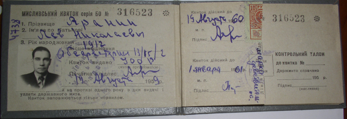 В 1955 г. переезжает в Киев к сестре Валентине (1921 г.р.). Наверное, в годы войны, документов об образовании нет никаких, и папа поступает в 1955 г. в школу рабочей молодежи, которую заканчивает в 1956 году. Продолжает образование во Всесоюзном заочном институте советской торговли и в 1962 г., защитив диплом в Донецком институте советской торговли, получает специальность товароведа.