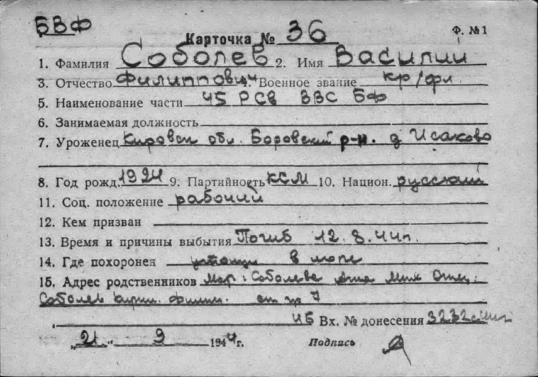 3. ЦВМА ф.787 оп.2 д.138 :БВФ Упр.ВВС, ОКОС № 01971 от 12.09.1944 г.