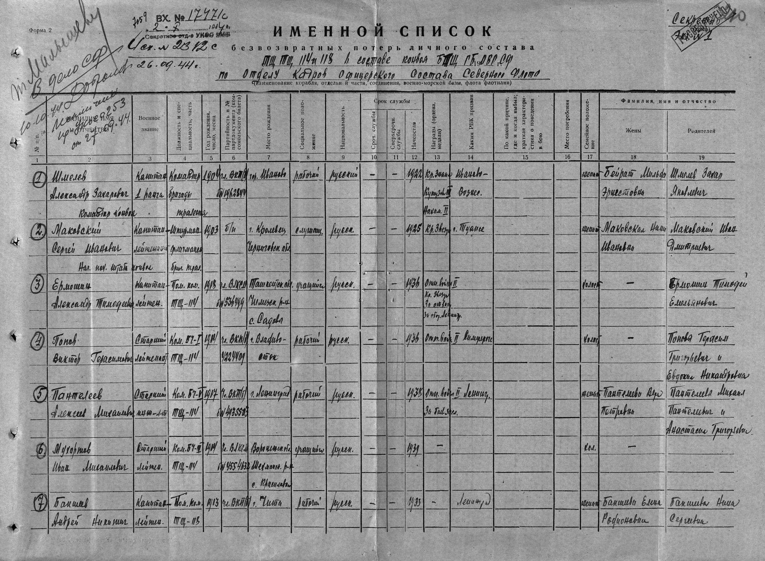 Из Списка безвозвратных потерь личного состава Беломорской Военной флотилии Северного флота.
