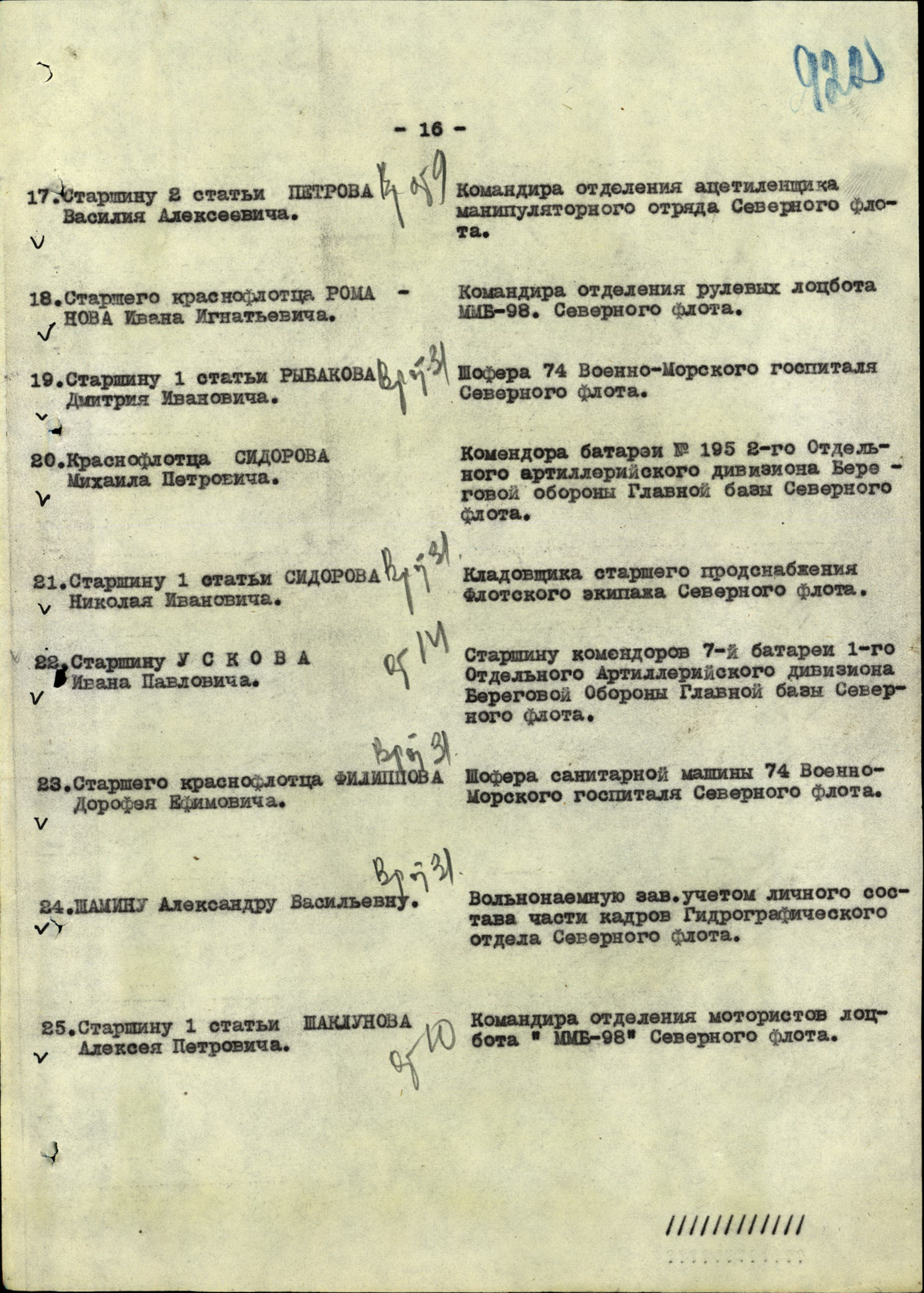 "91. Вальский Александр Федорович, капитан-лейтенант, спасен, управление 6-го ДТЩ.".
