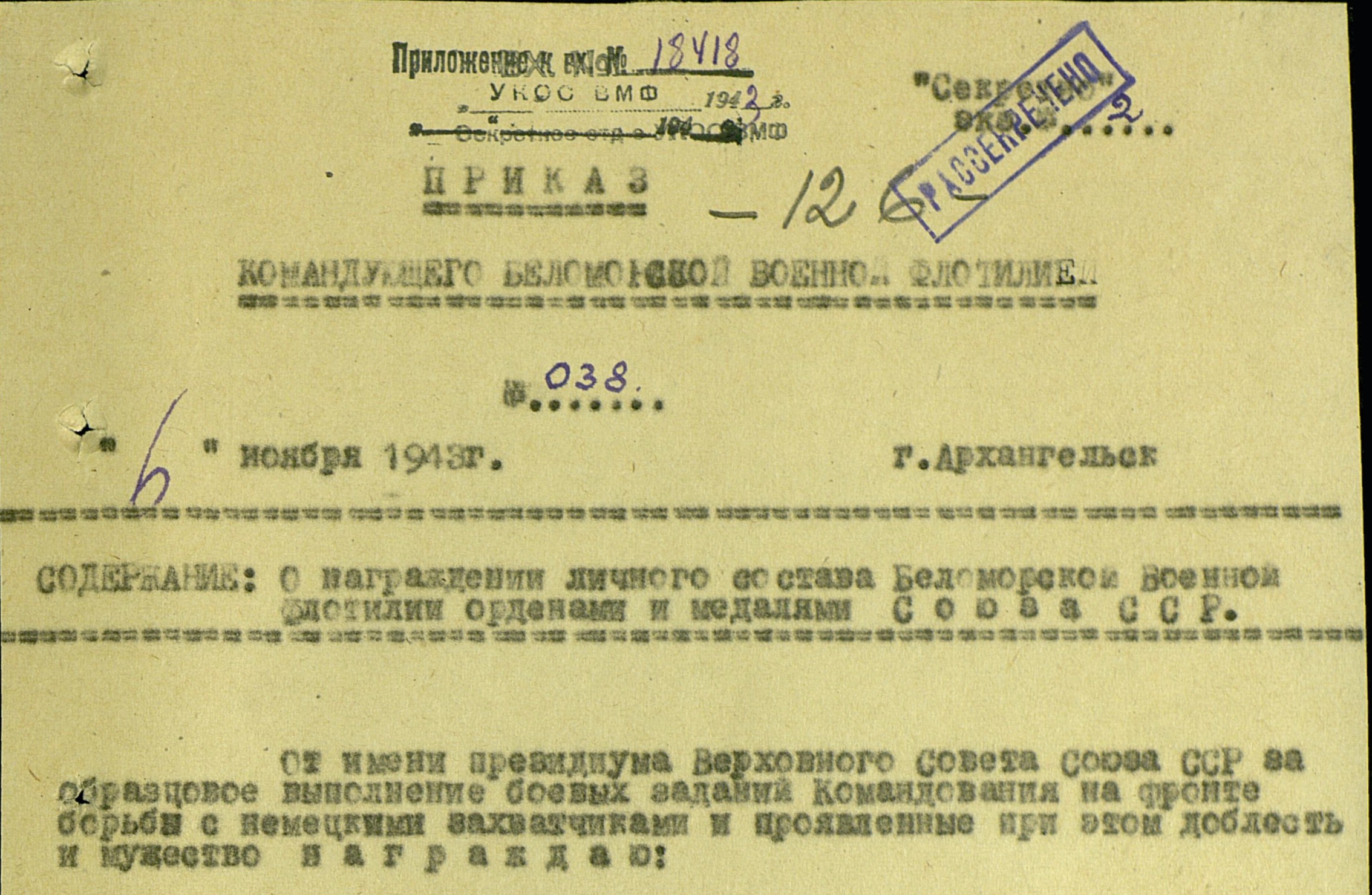Наградные документы.