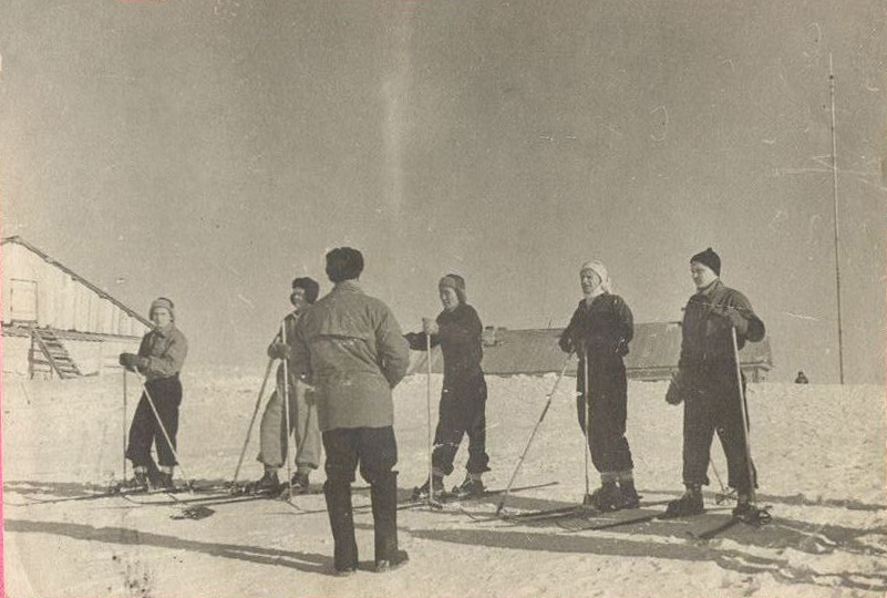 Лыжные соревнования, Тикси, 1946 год. Кудряков Виктор Михайлович – крайний справа (в темной шапке).