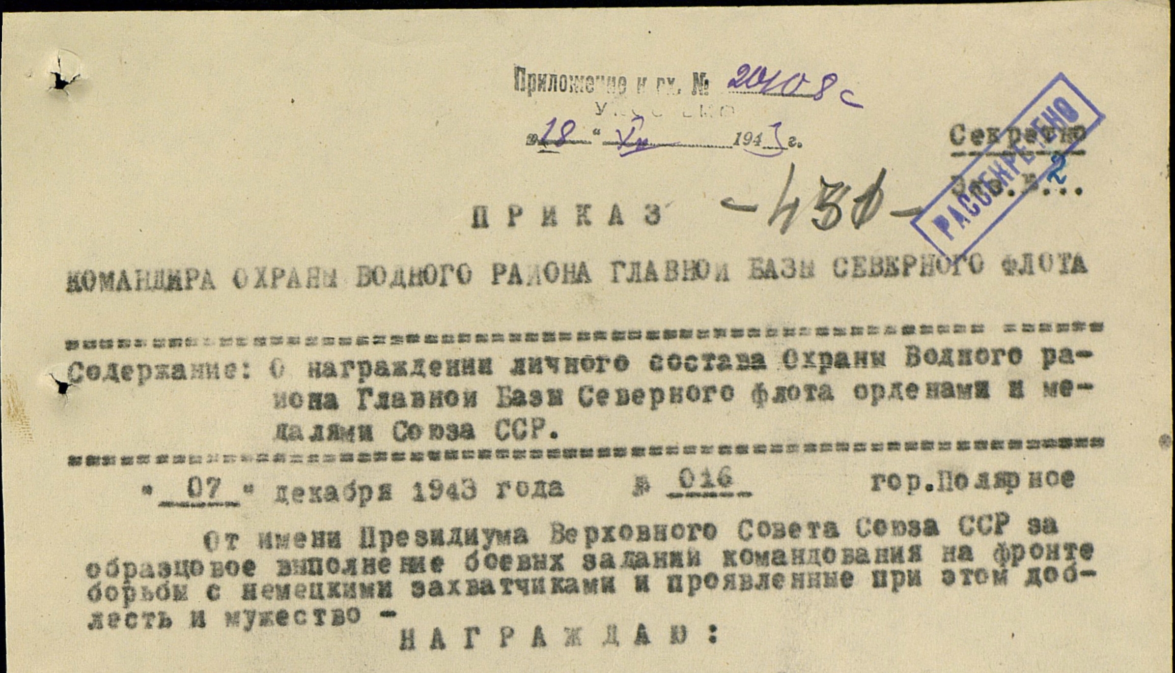 Донесение о безвозвратных потерях 3410 от 03.10.1944 (ЦВМА, Ф. 864, О. 1, Д. 1358).