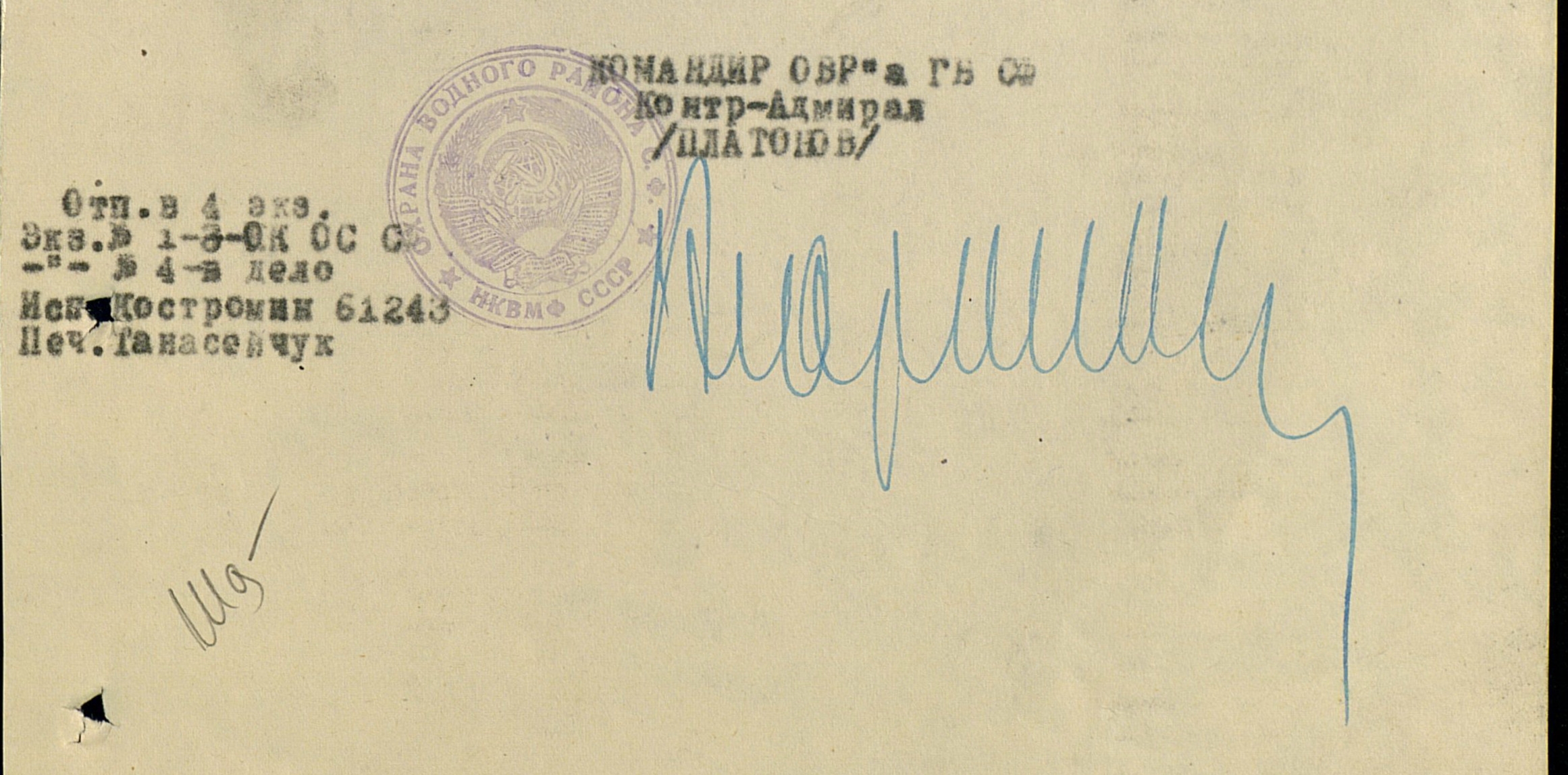 Донесение о безвозвратных потерях исх 02196 от 21.10.1944 (ЦВМА, Ф. 4038, О. 54, Д. 23).