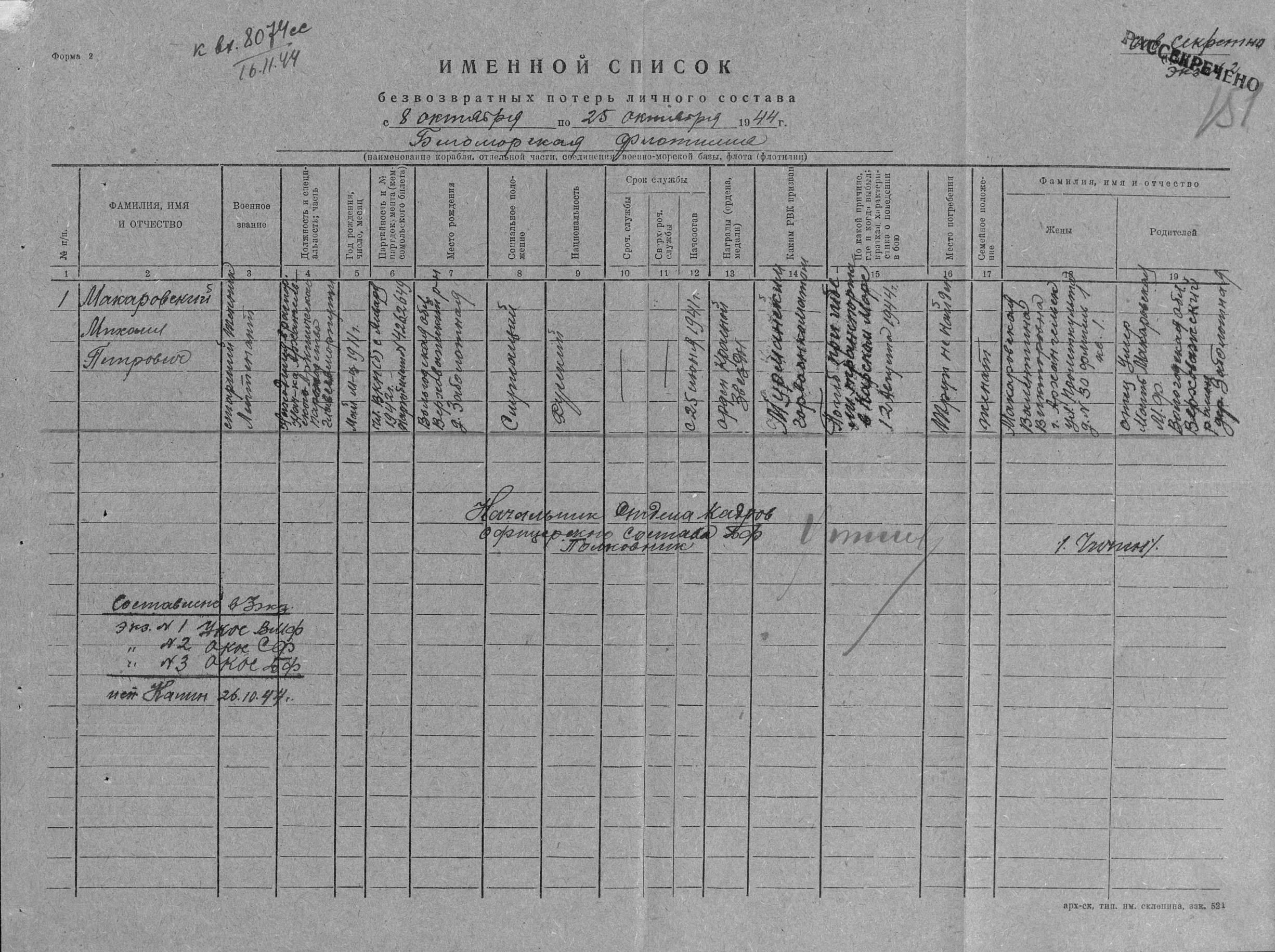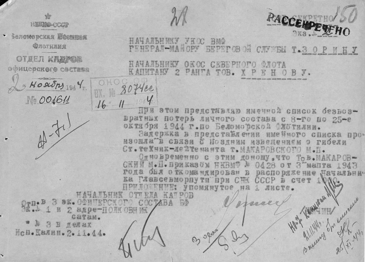 Звали мужчину Михаилом Петровичем Макаровским, имел он звание старшего техника-лейтенанта и направлялся куда-то в командировку от Главсевморпути…