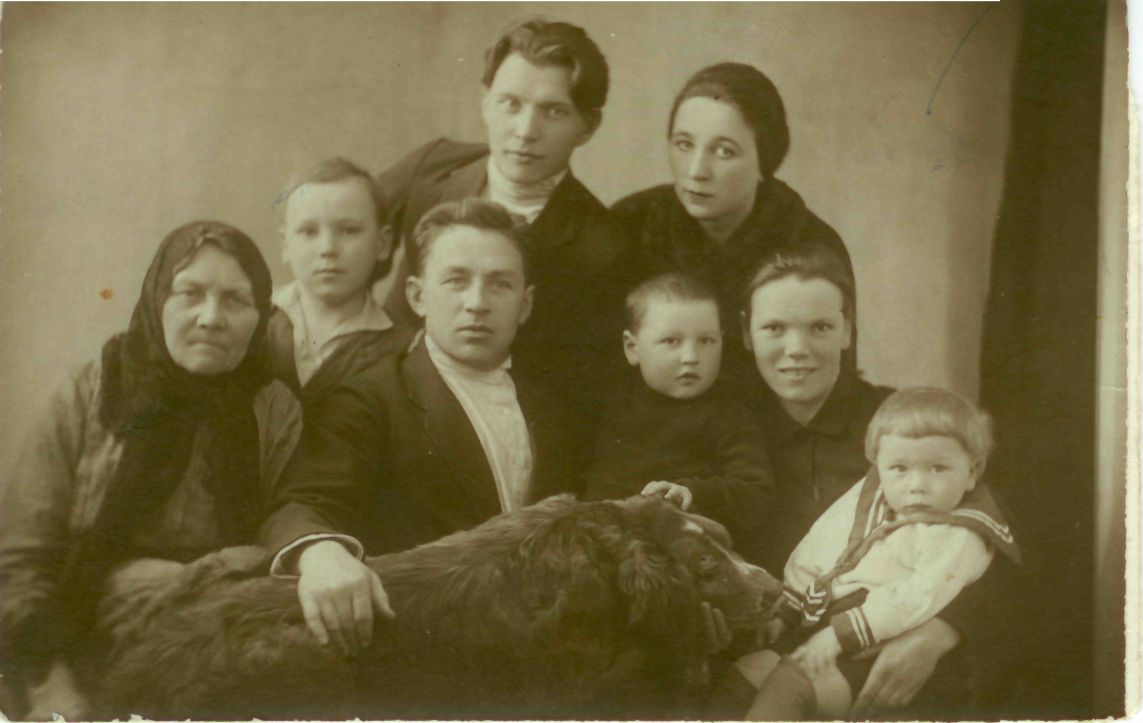 Верхний ряд - Михаил Петрович и Валентина Викторовна Макаровские; нижний ряд - Мария Фёдоровна, Роза Николаевна, Николай Петрович, Гертруда Николаевна, Валентина (супруга Николая Петровича) и Сергей Николаевич.