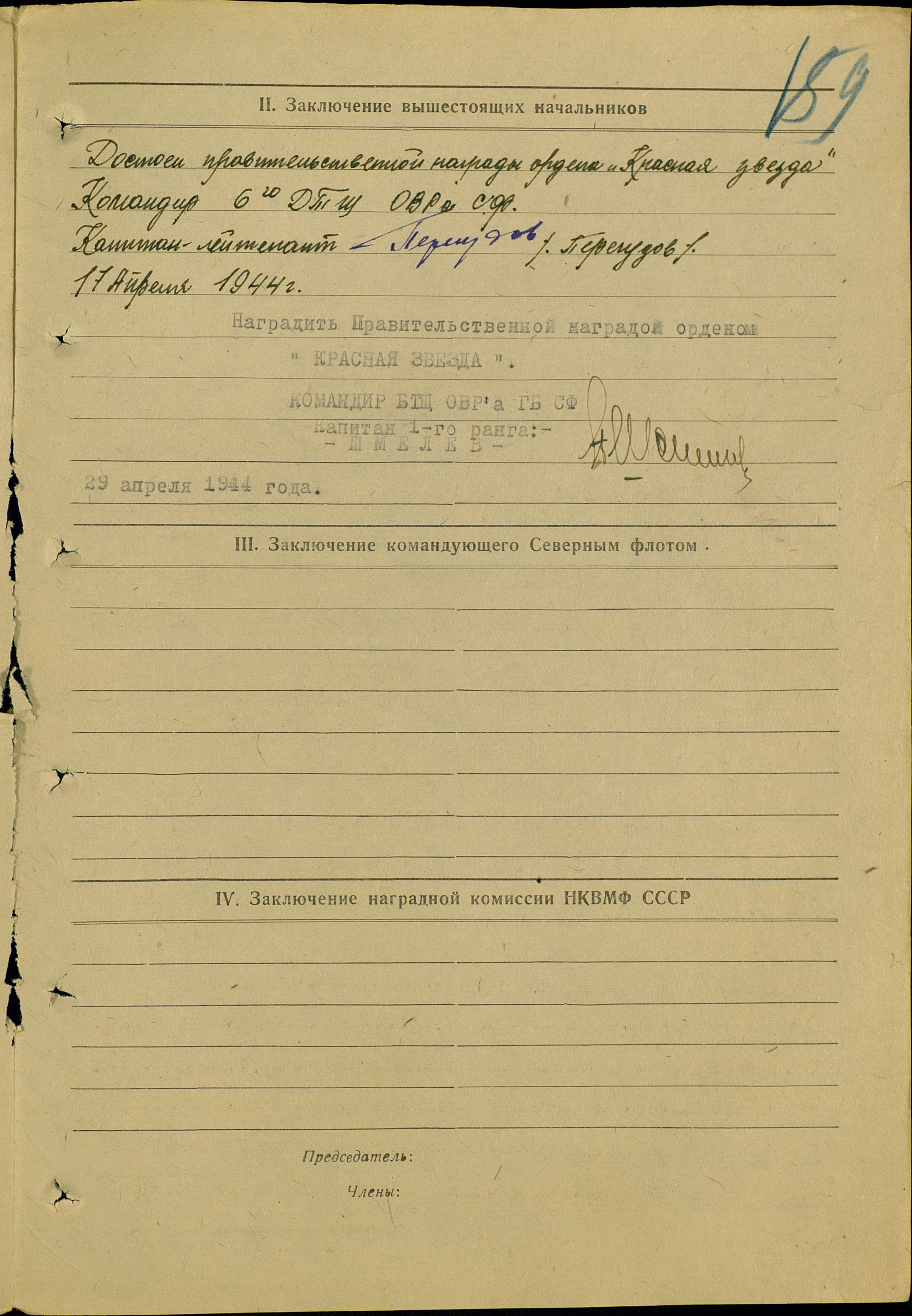 Наградной лист.