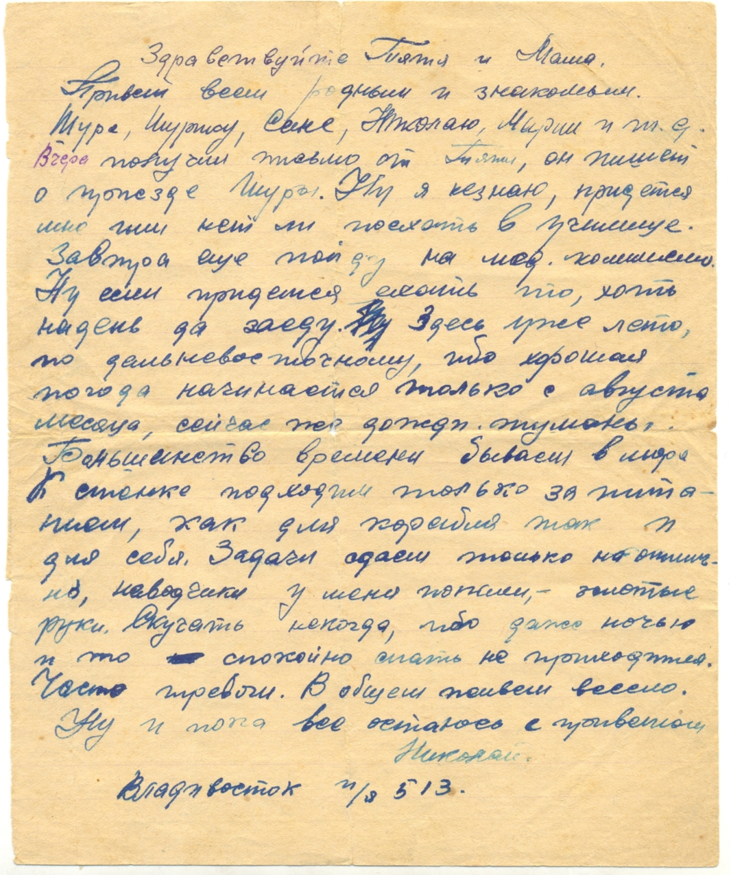 Письмо от Николая Михайловича. Даты нет, предположительно весна 1941 года.