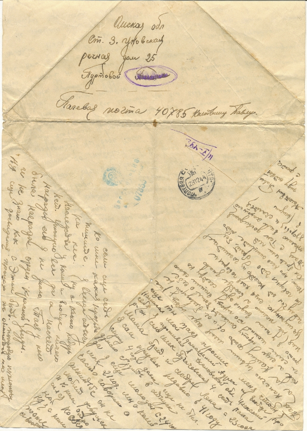 Письмо от Колотвина Павла И. на имя Таисии Михайловны от 29.12.44 г.