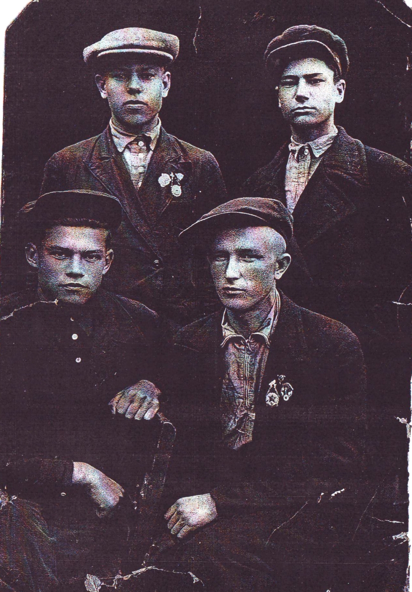в верхнем ряду: старшая дочь Мария (1904 г.р.), сын Михаил (1909 г.р.,), сын Александр (1912 г.р.), дочь Таисия (1916 г.р.);