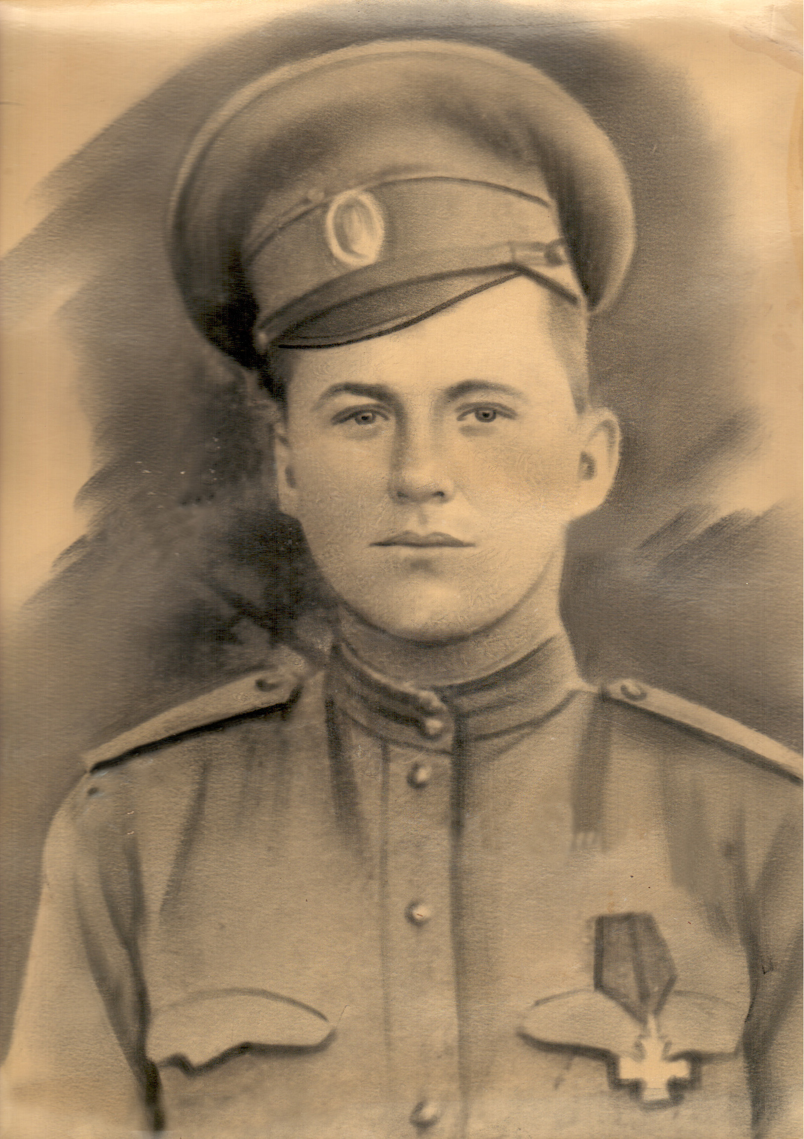 Портрет Павлика Исаака Прокопьевича времен Первой мировой войны, где он был награжден Георгиевским крестом.