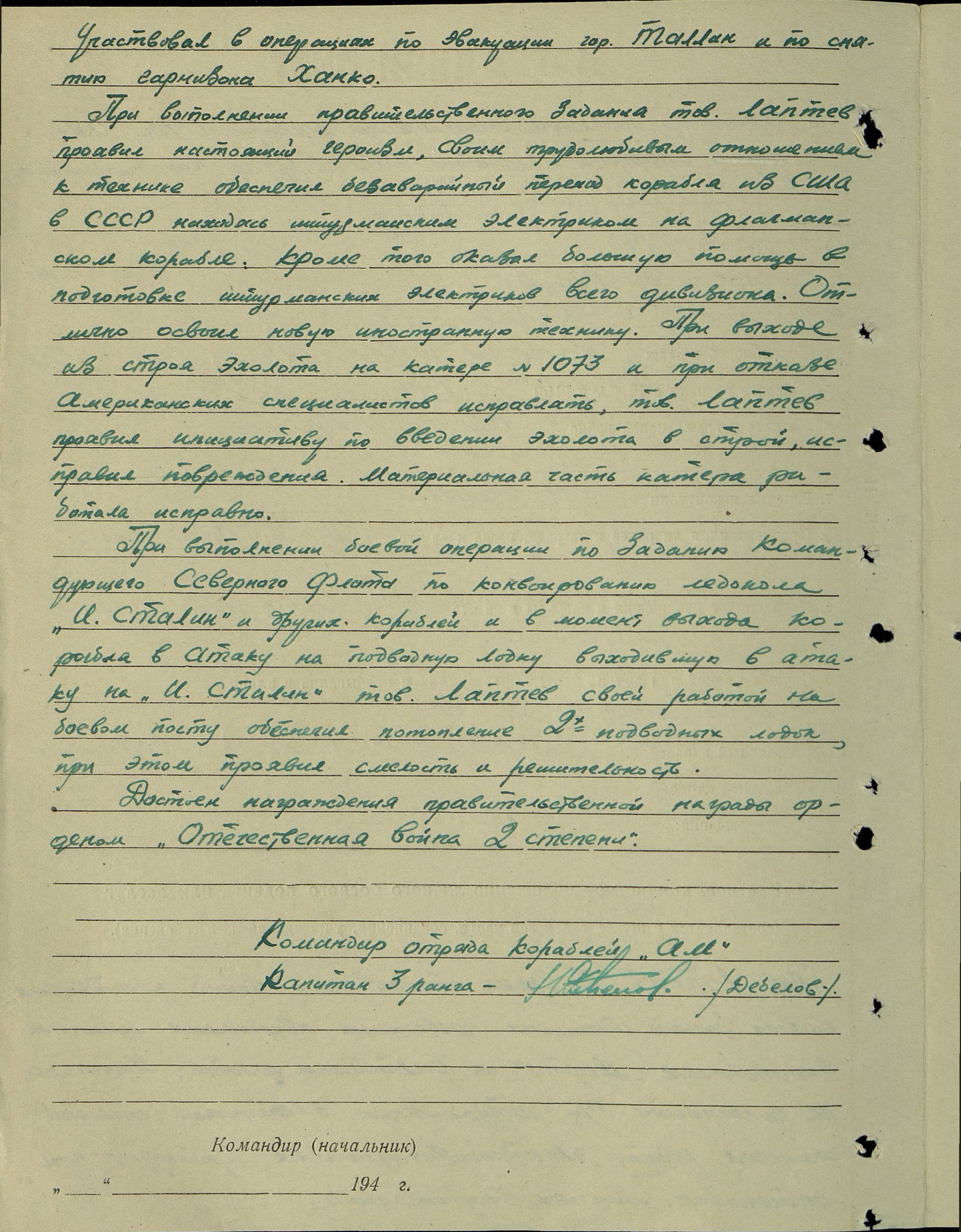 "Во второй половине 1944 года с усилением активности неприятельских подводных лодок обстановка на Северном морском театре