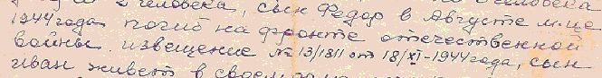 Сохранился один из немногочисленных семейных документов, в котором приводится ссылка на дату гибели Федора:
