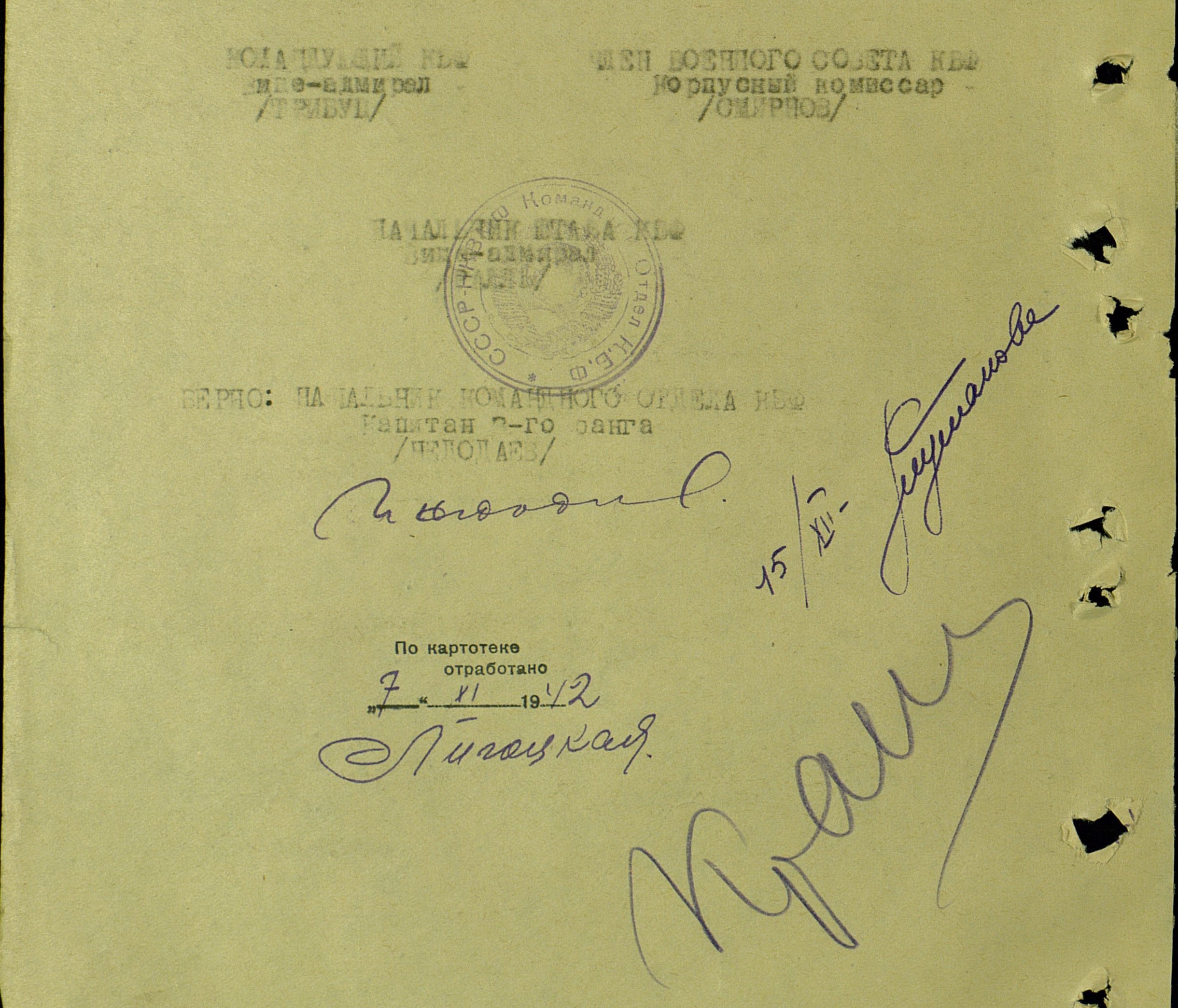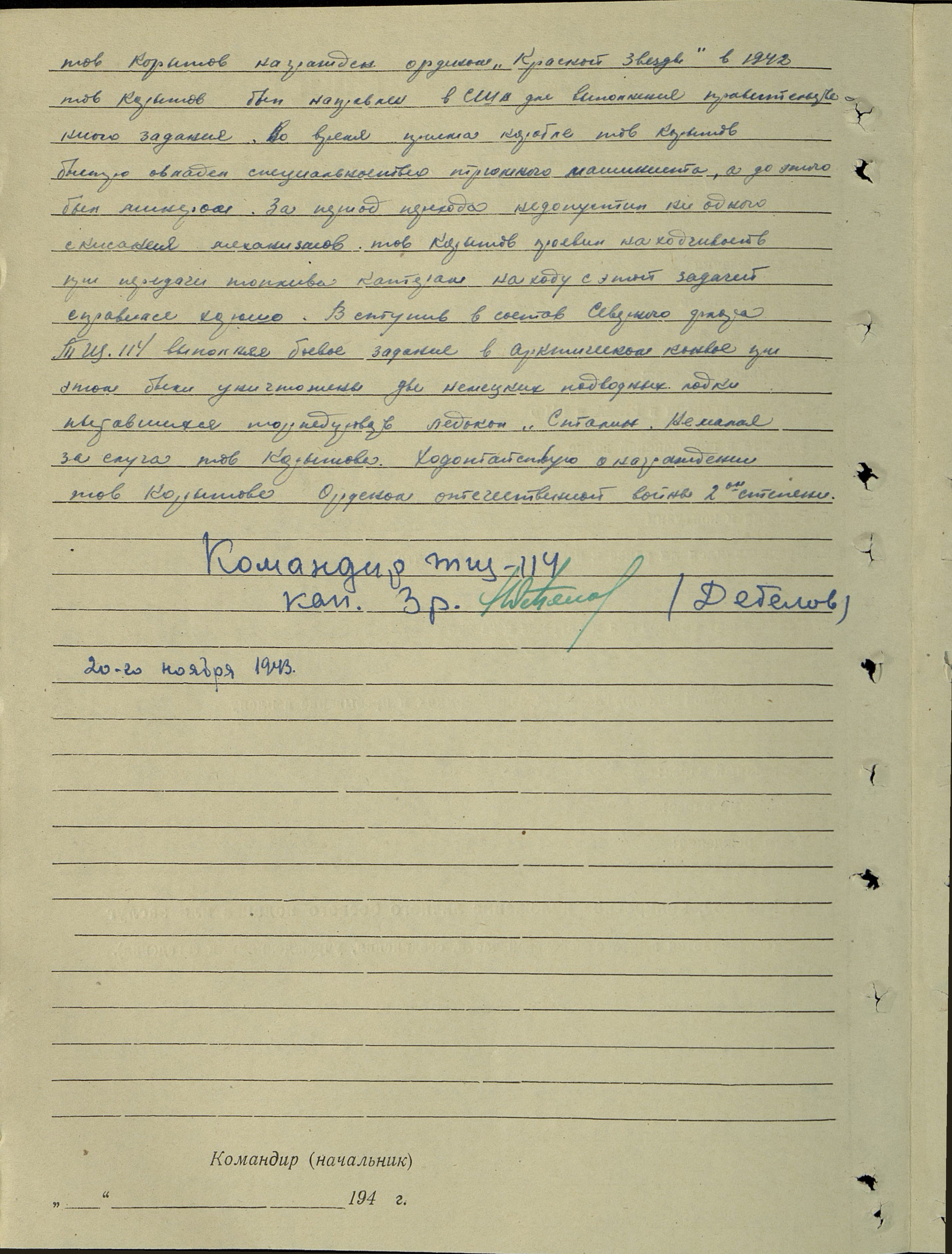 капитан 2 ранга (подпись) /Хренов/