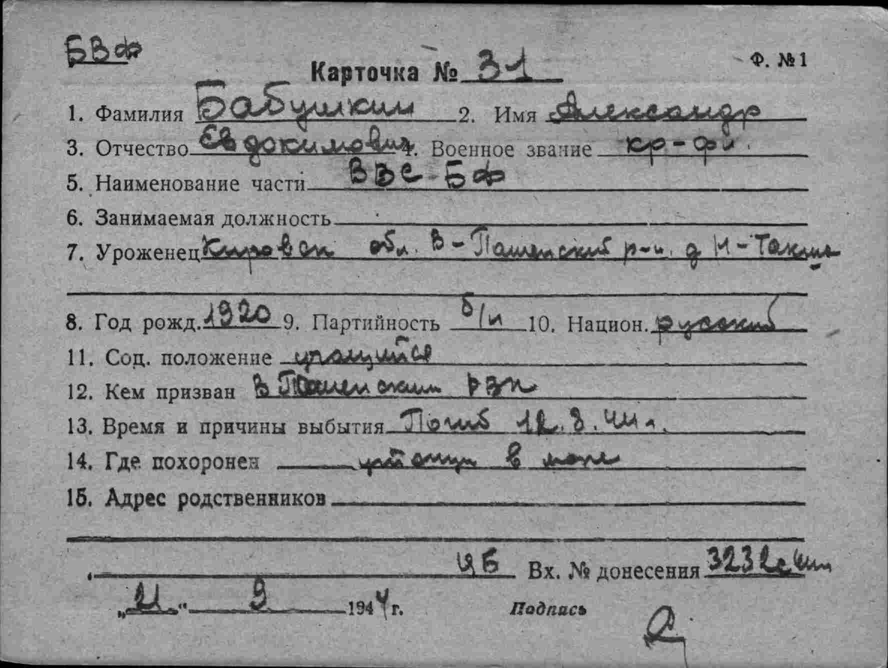 Карточка (ЦВМА, Картотека безвозвратных потерь).