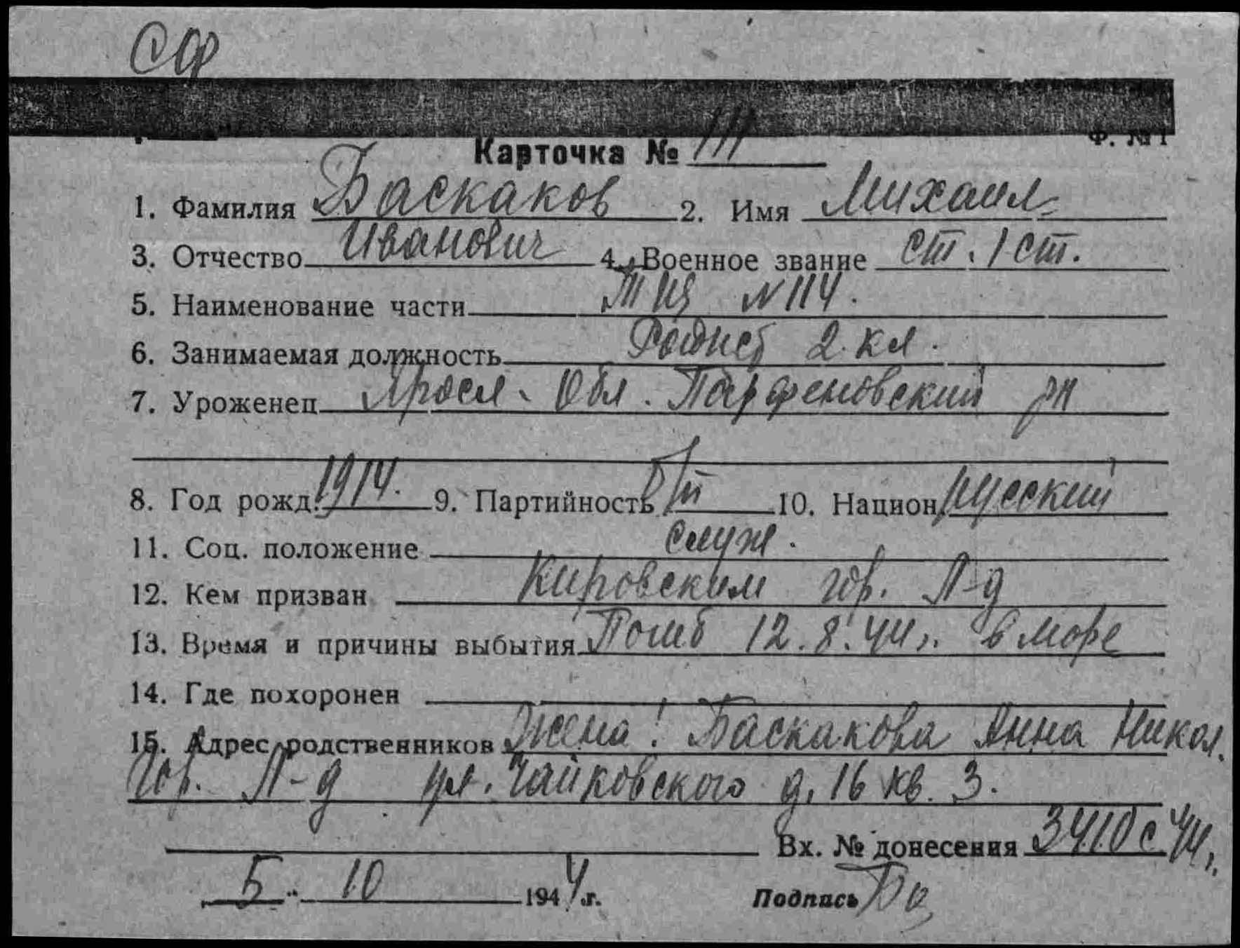Карточка (ЦВМА, Картотека безвозвратных потерь).