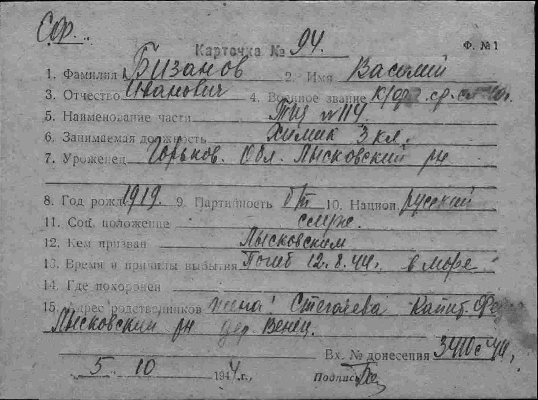 Карточка (ЦВМА, Картотека безвозвратных потерь).