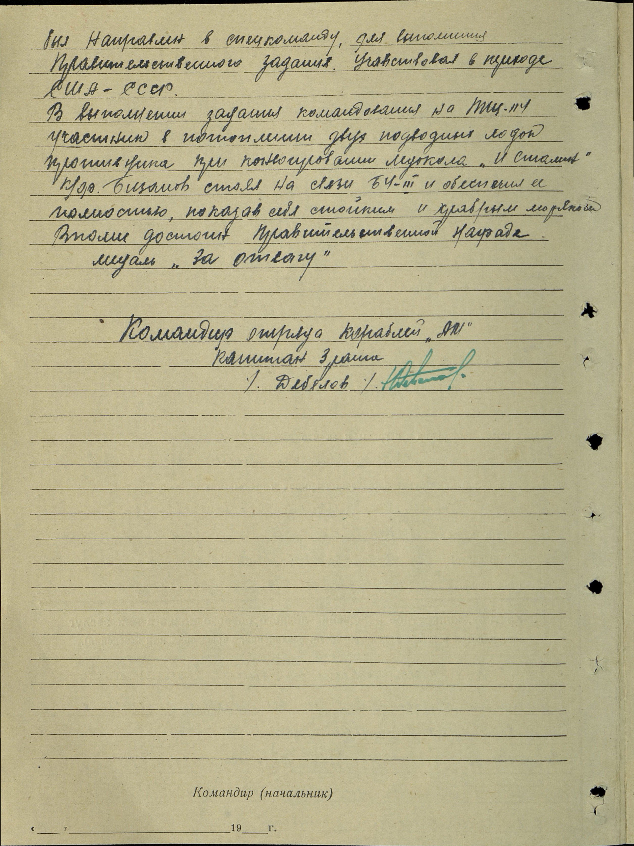 За время Отечественной войны тов. Бизанов активно участвовал во всех боевых операциях на э/м «Карл Либкнехт».