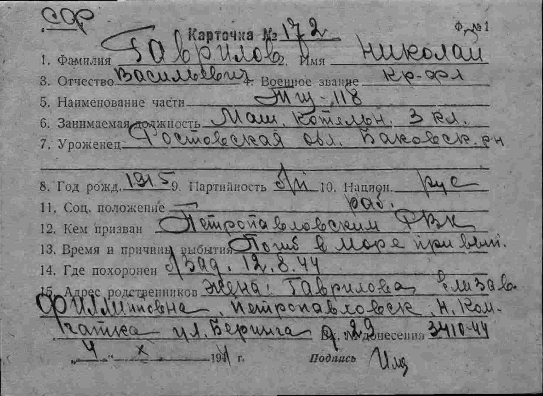 Карточка (ЦВМА, Картотека безвозвратных потерь).