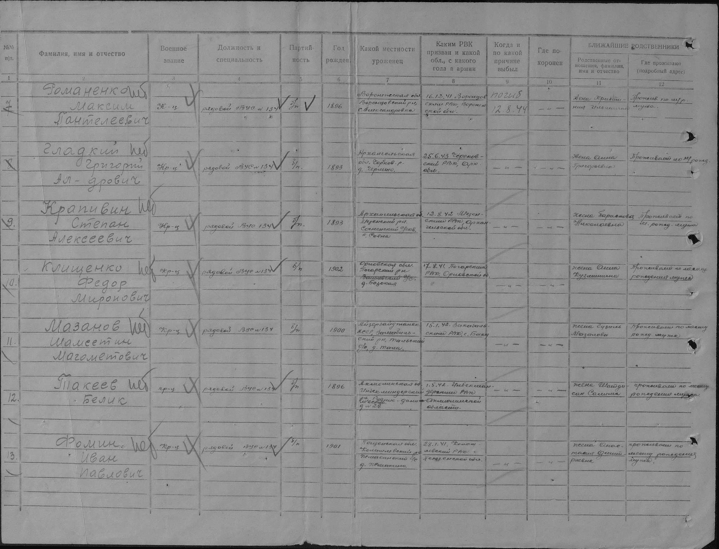 Донесение о безвозвратных потерях 94682 от 14.06.1945 (ЦАМО, Ф. 58, О. 18003, Д. 803).