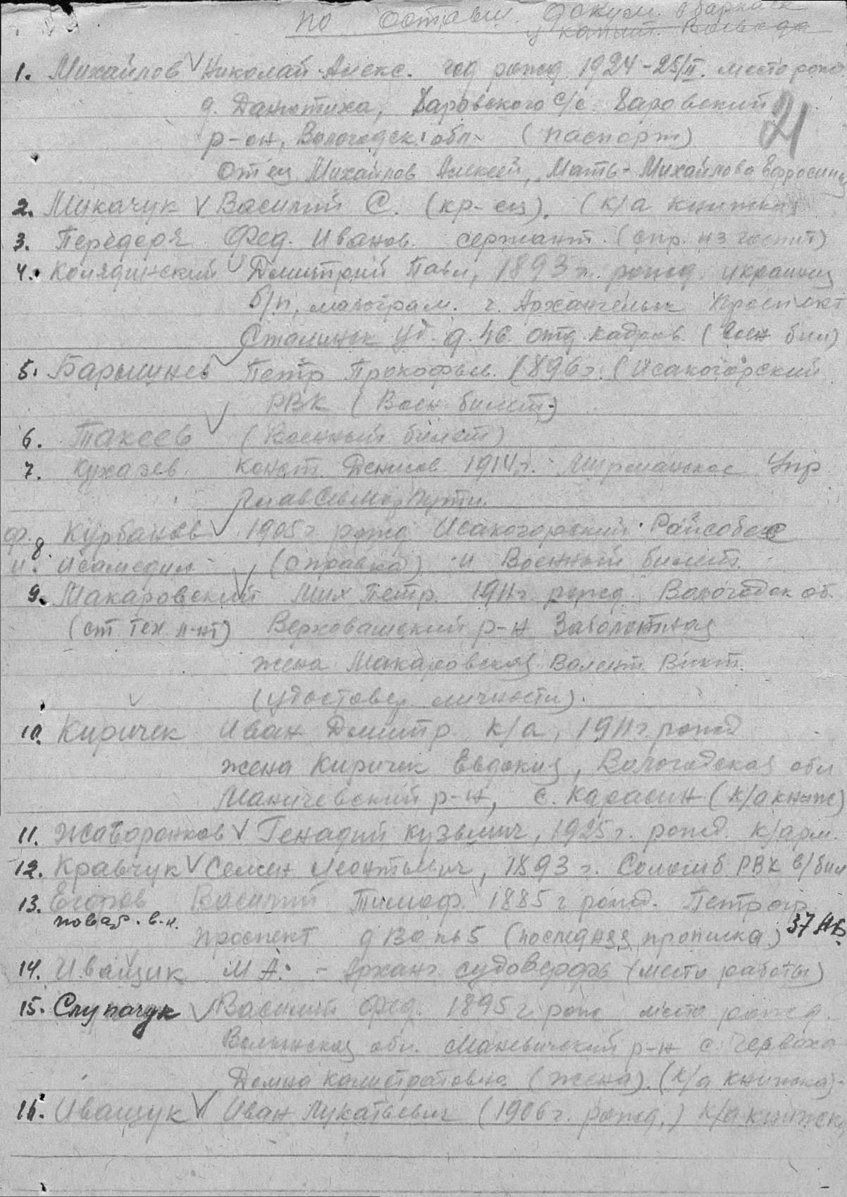 Донесение о безвозвратных потерях 94682 от 14.06.1945 (ЦАМО, Ф. 58, О. 18003, Д. 803).
