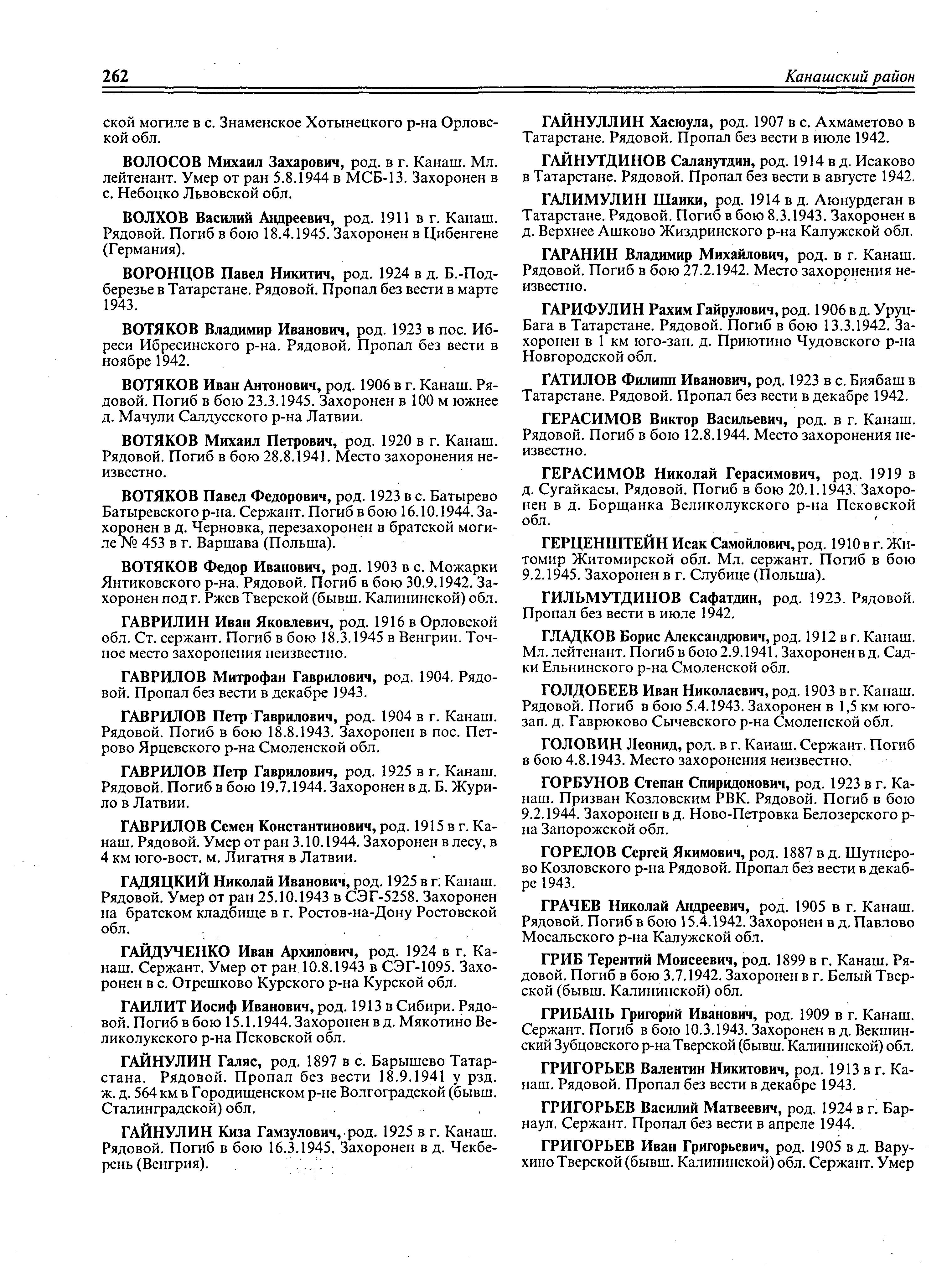 1940 (1941) г.; каким РВК призван – Канашским (Канажским) РВК Чувашской АССР; награды – орден Красной Звезды; по какой причине, где и когда выбыл – погиб в море при выполнении боевого задания 12.08.1944 г.; семейное положение – холост; родственники (ФИО, адрес) – отец, Герасимов Василий Николаевич, мать, Герасимова Евдокия Ивановна, г. Канаш (Канаж) ВРЗ, ул. Горького, д. 1/15 (1/10);
