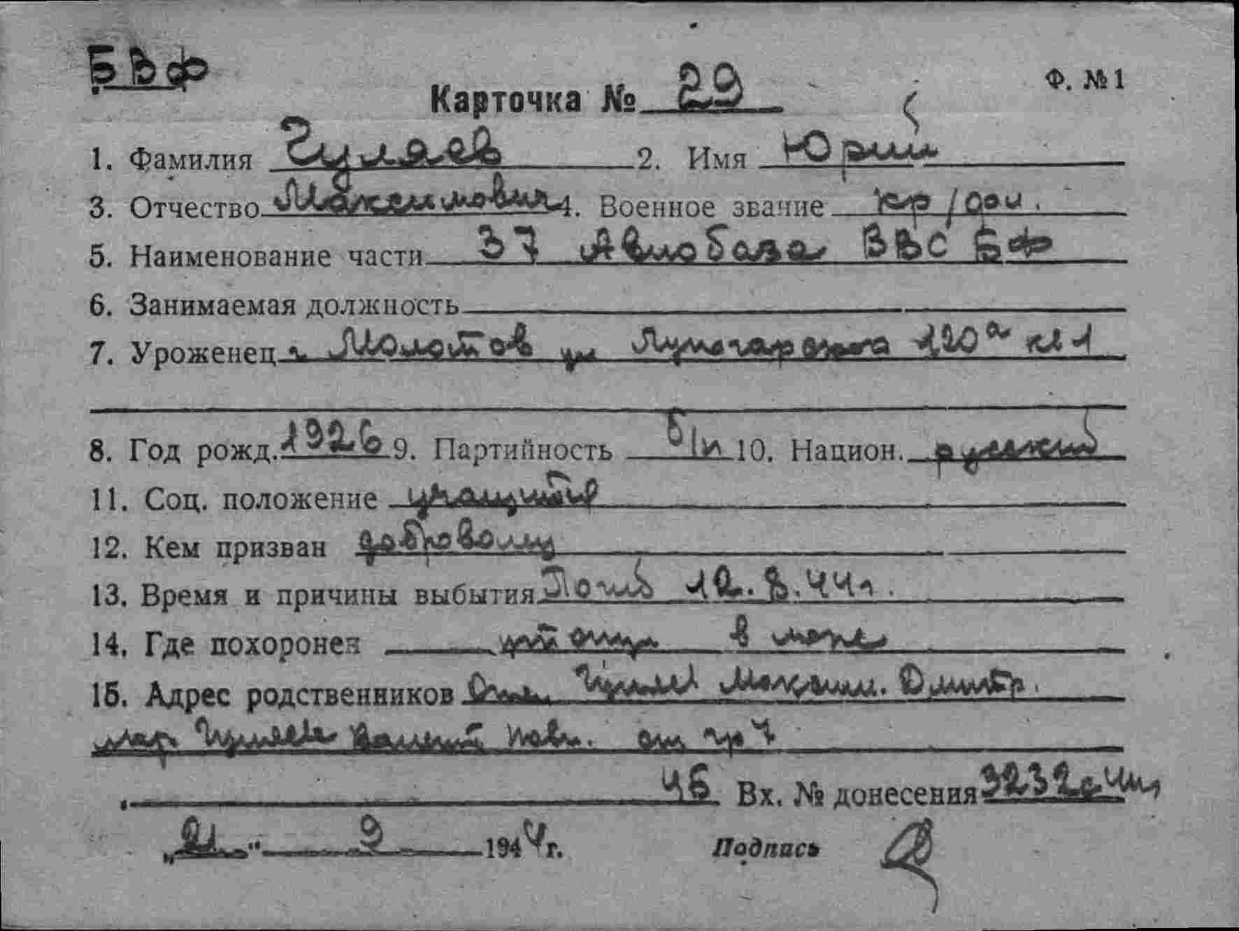 Карточка (ЦВМА, Картотека безвозвратных потерь).