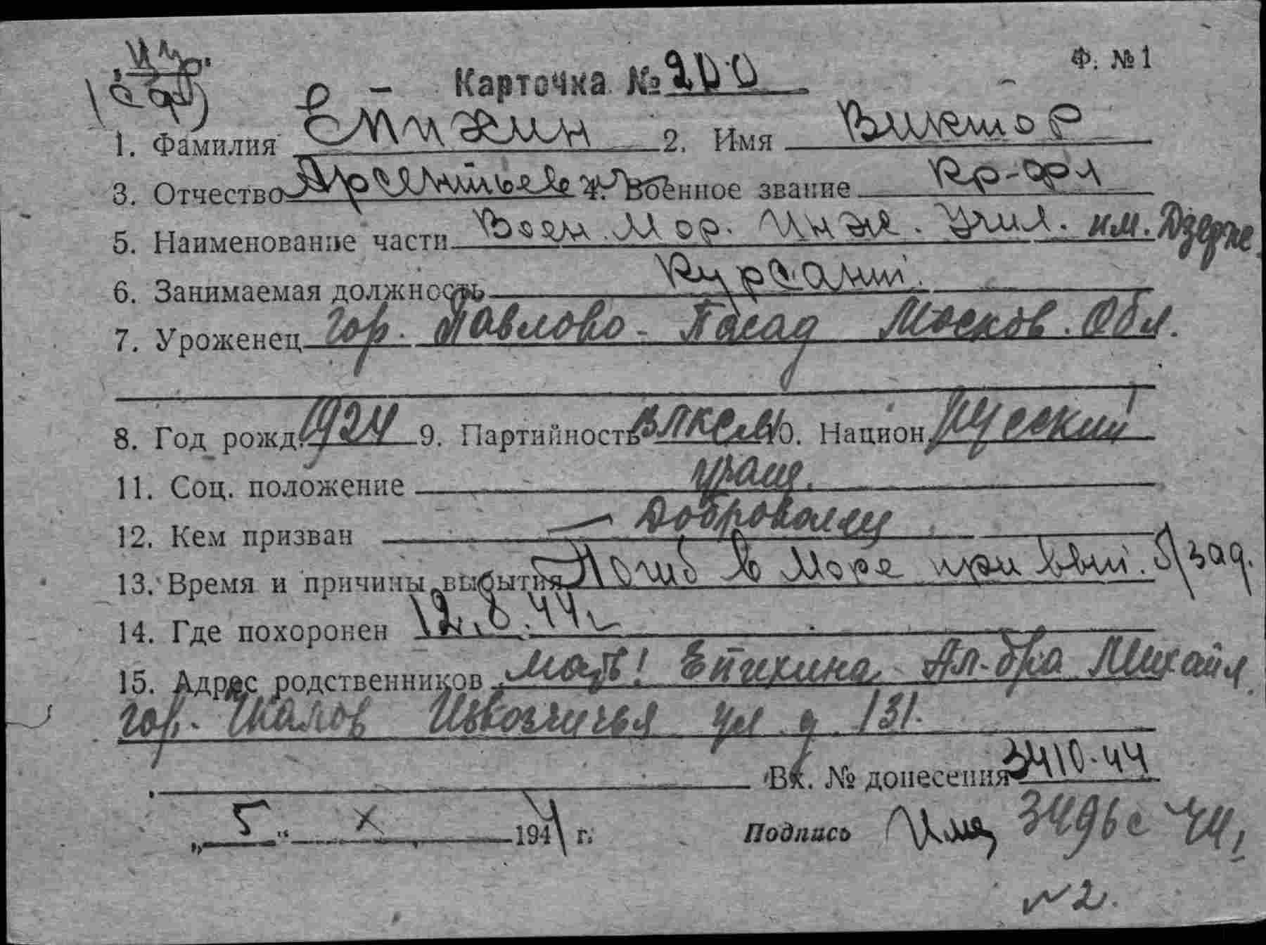 Карточка (ЦВМА, Картотека безвозвратных потерь).