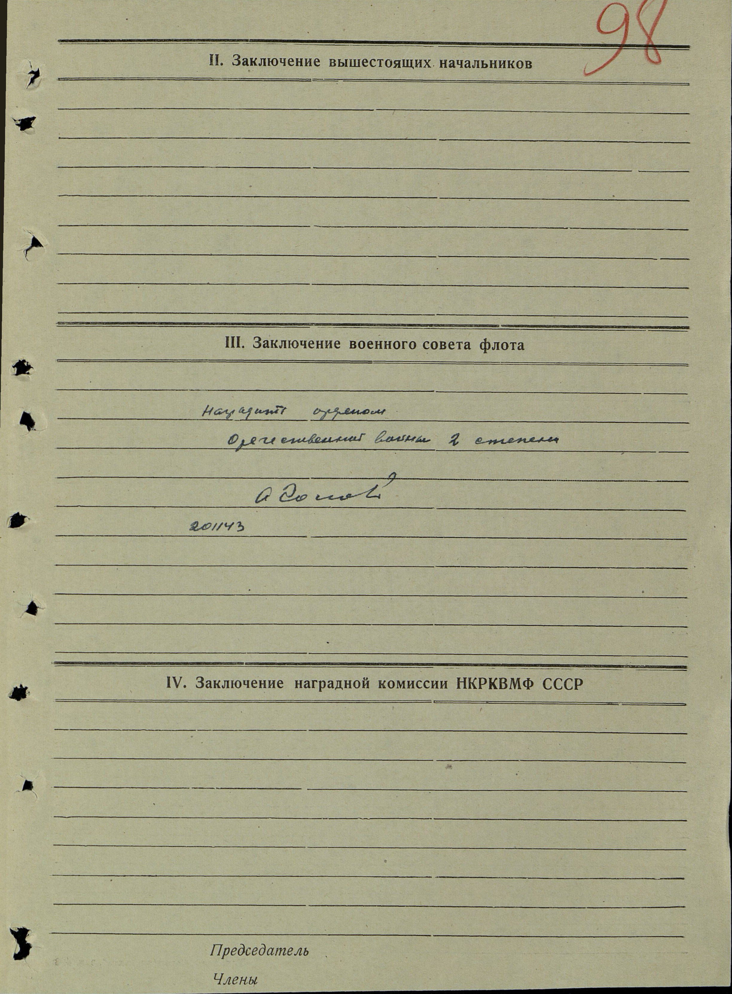 Наградной лист.