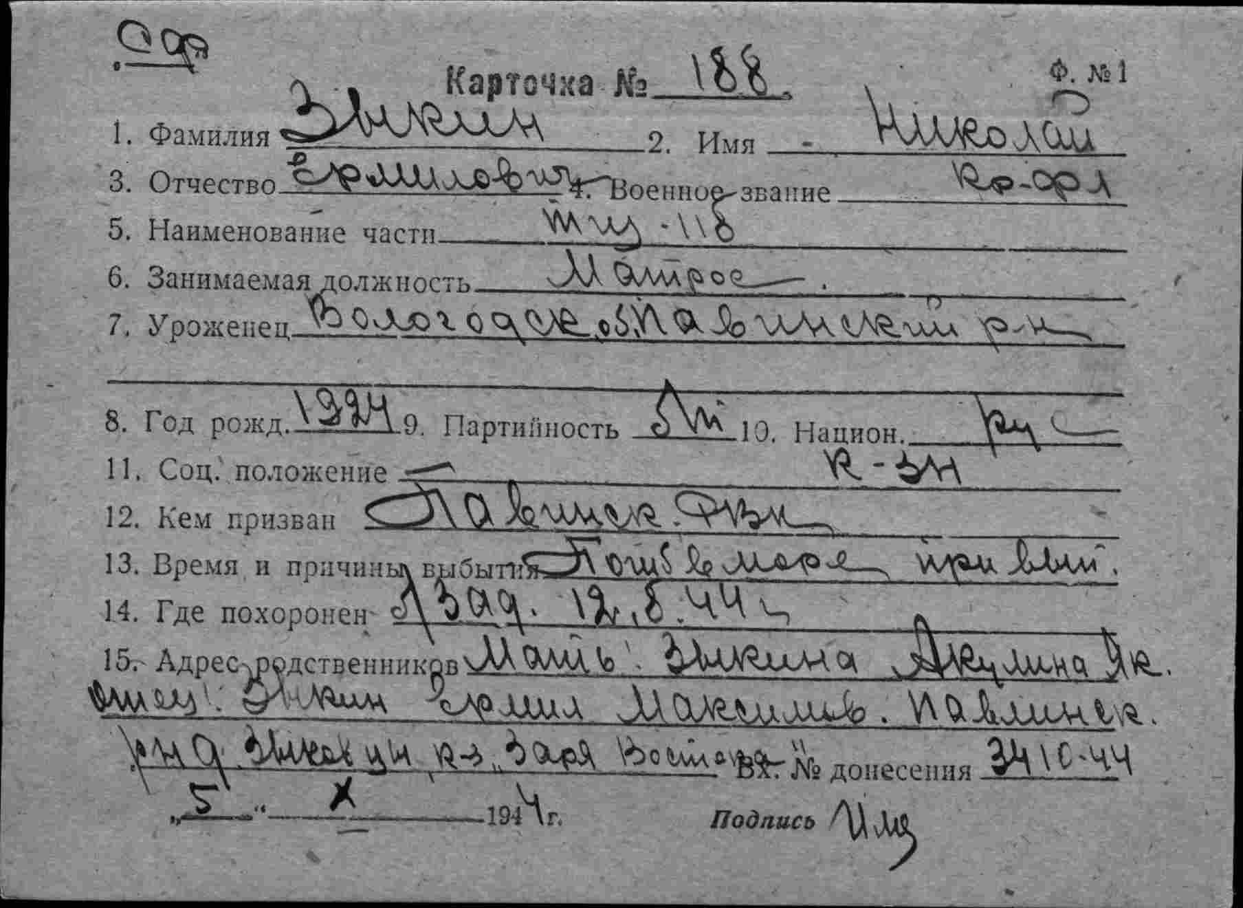 Карточка (ЦВМА, Картотека безвозвратных потерь).