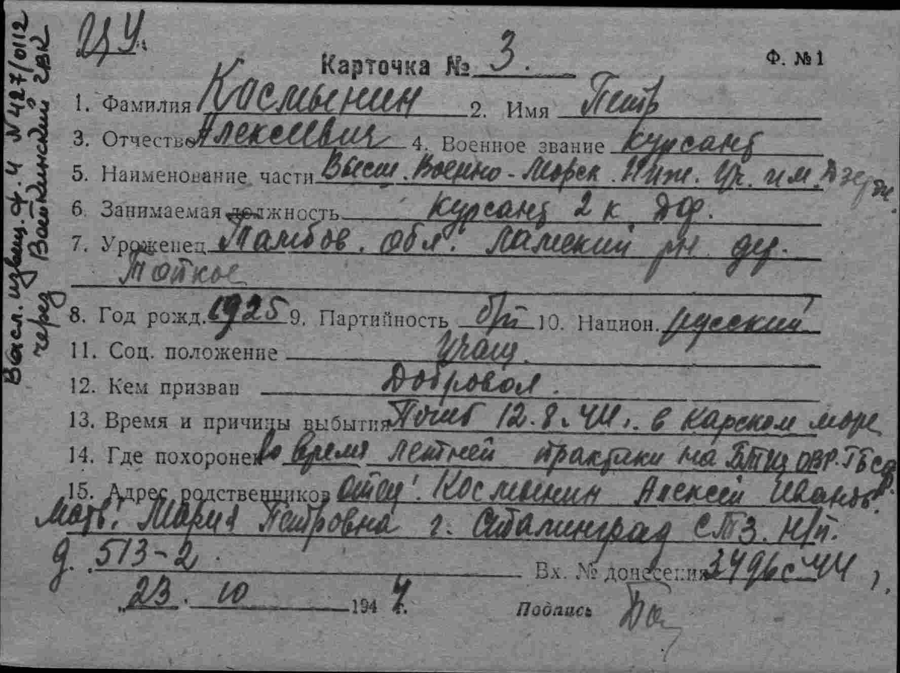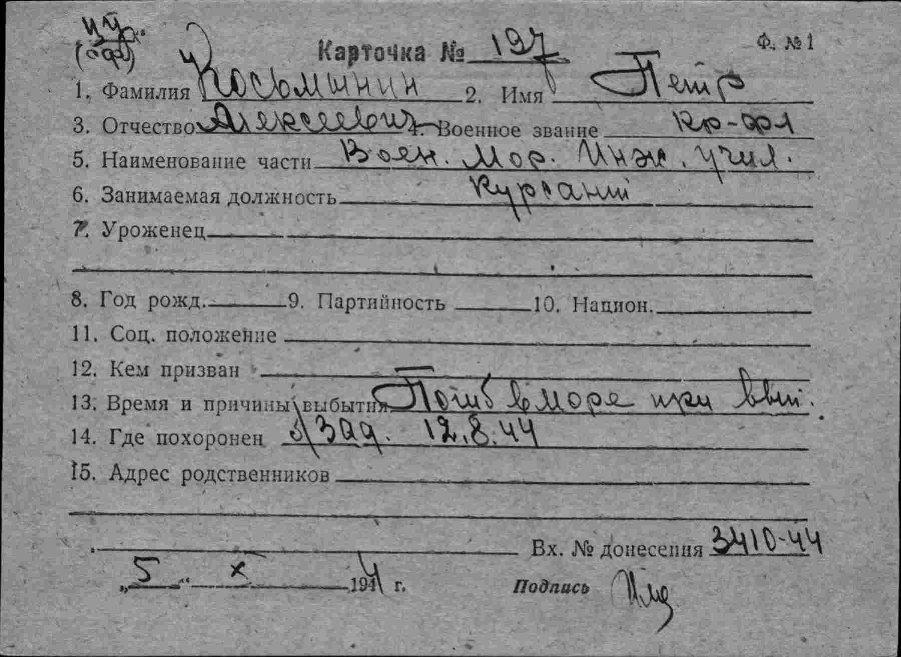 Карточка (ЦВМА, Картотека безвозвратных потерь).