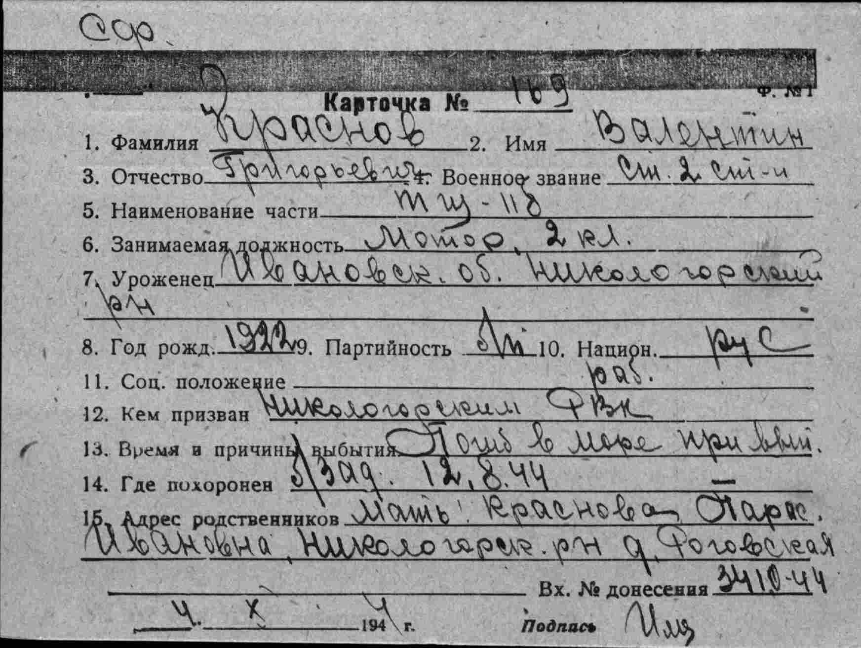 Карточка (ЦВМА, Картотека безвозвратных потерь).